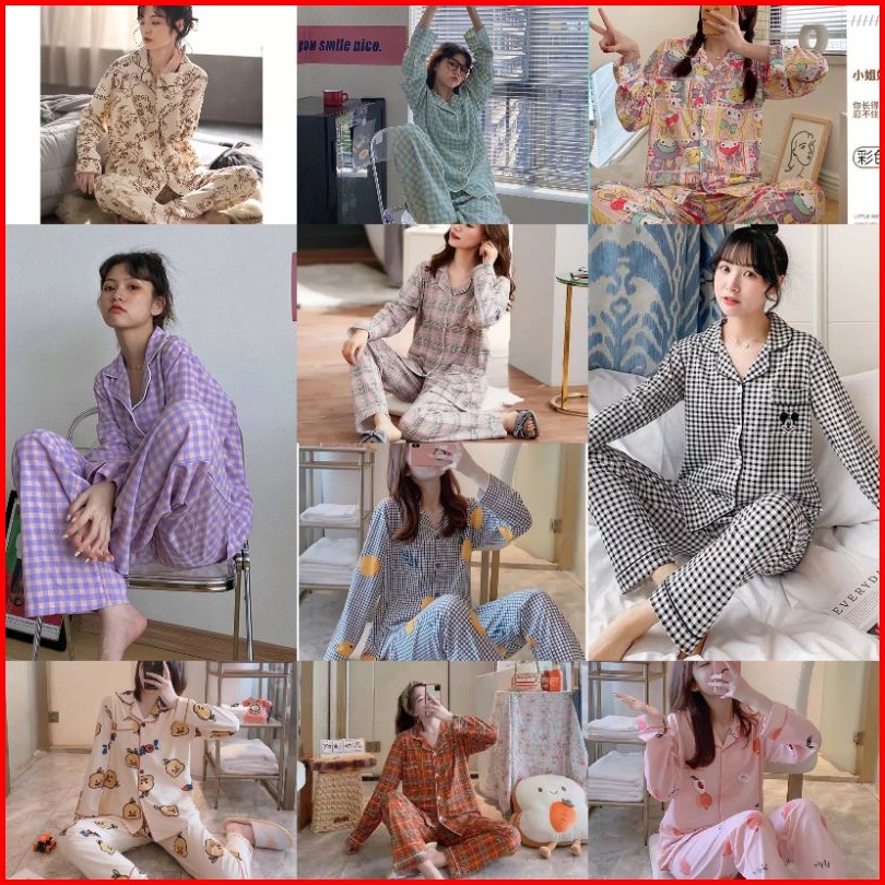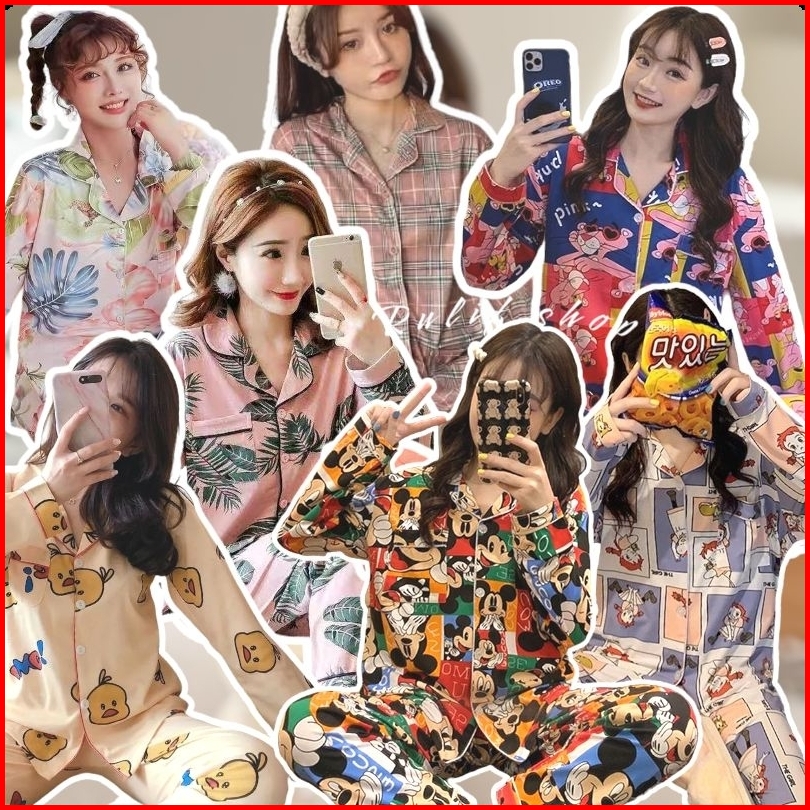 Rulif Baju Tidur Lengan Panjang Piyama Wanita Pp Import Krah Korean Style