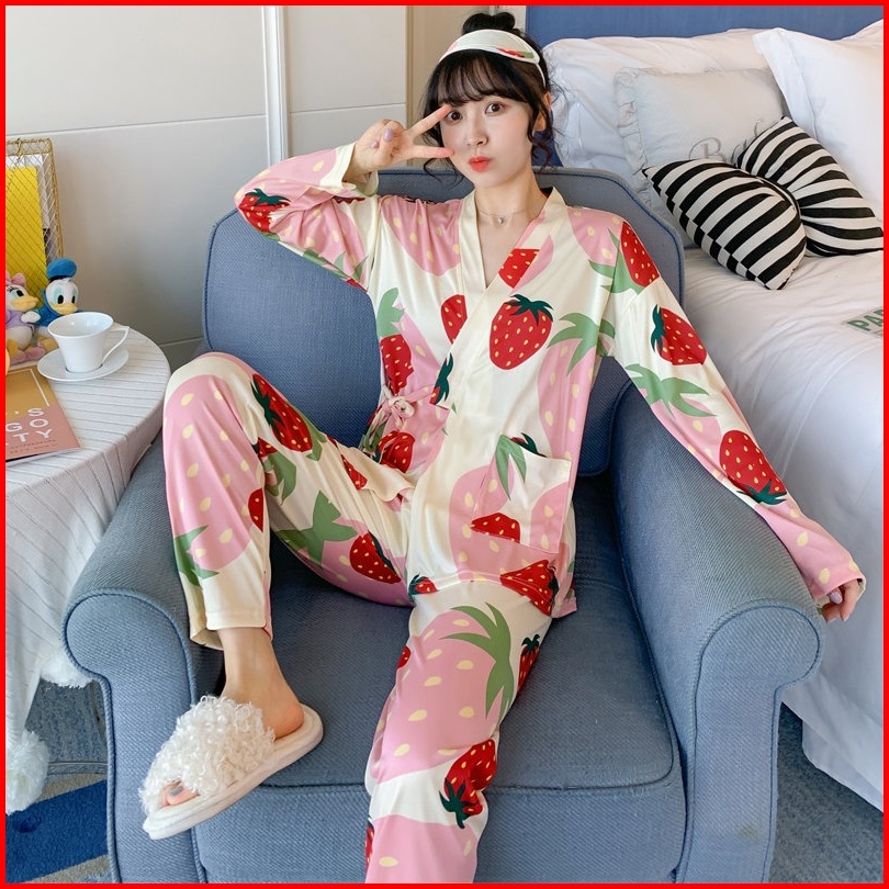 Rulif Baju Tidur Wanita Piyama Kimono Wanita Import Tali