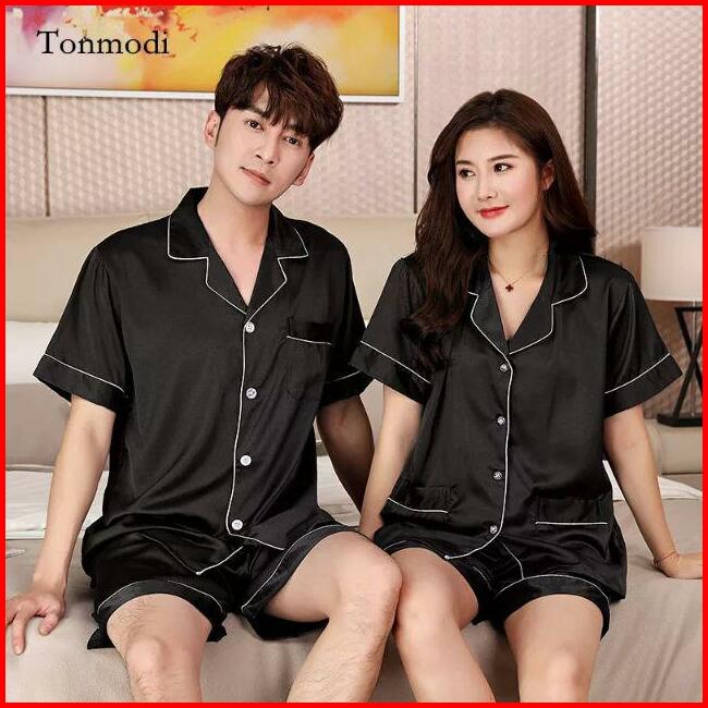 Rulif Piyama Baju Tidur Couple Satin Fashion Pendek Polos Set Hp Satin