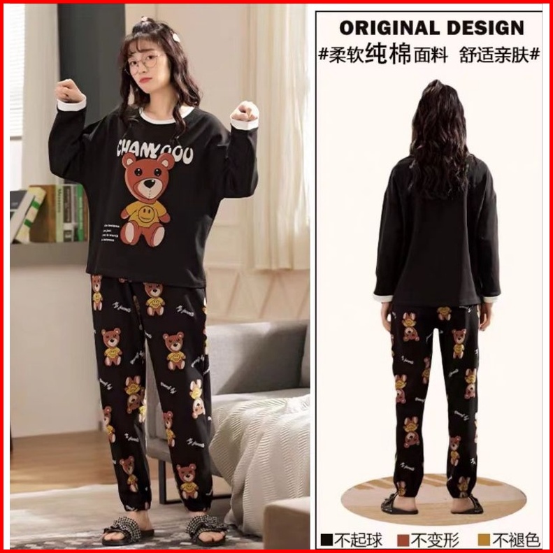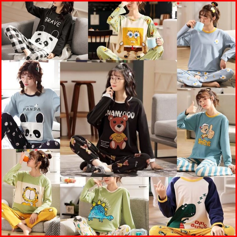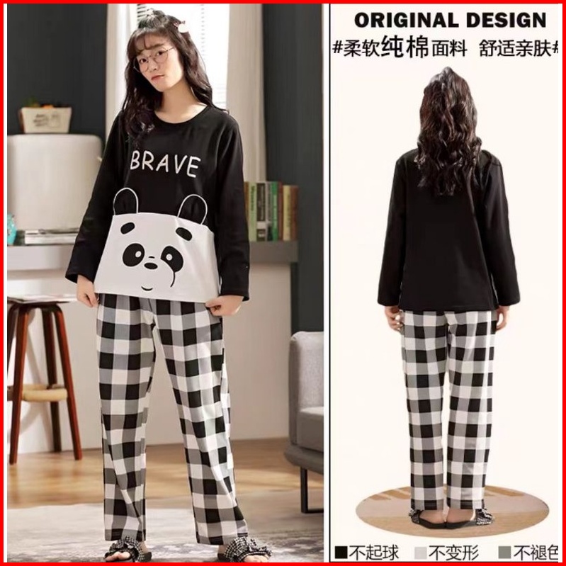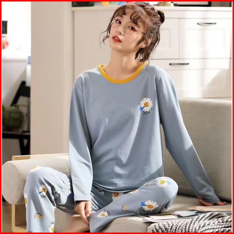 Rulif Set Piyama Katun Piyama Katun Lengan Panjang Baju Tidur Katun Lengan Panjang Baju Tidur Katun Pp Wanita Import