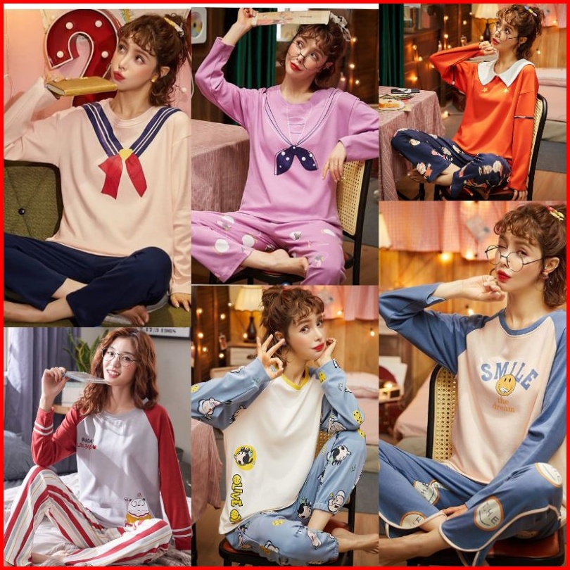 Rulif Piyama Pp Baju Tidur Wanita Import Katun Tebal Setelan Baju Tidur Wanita