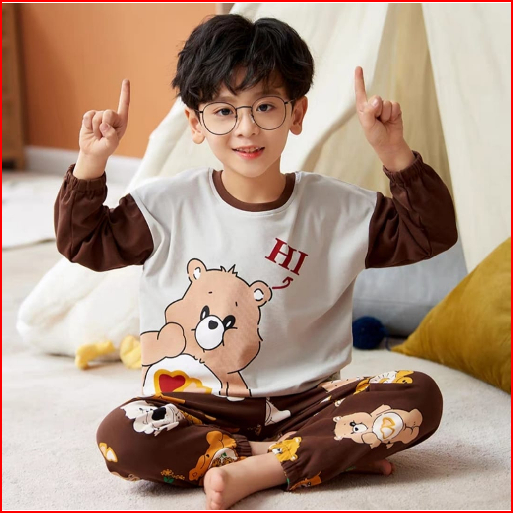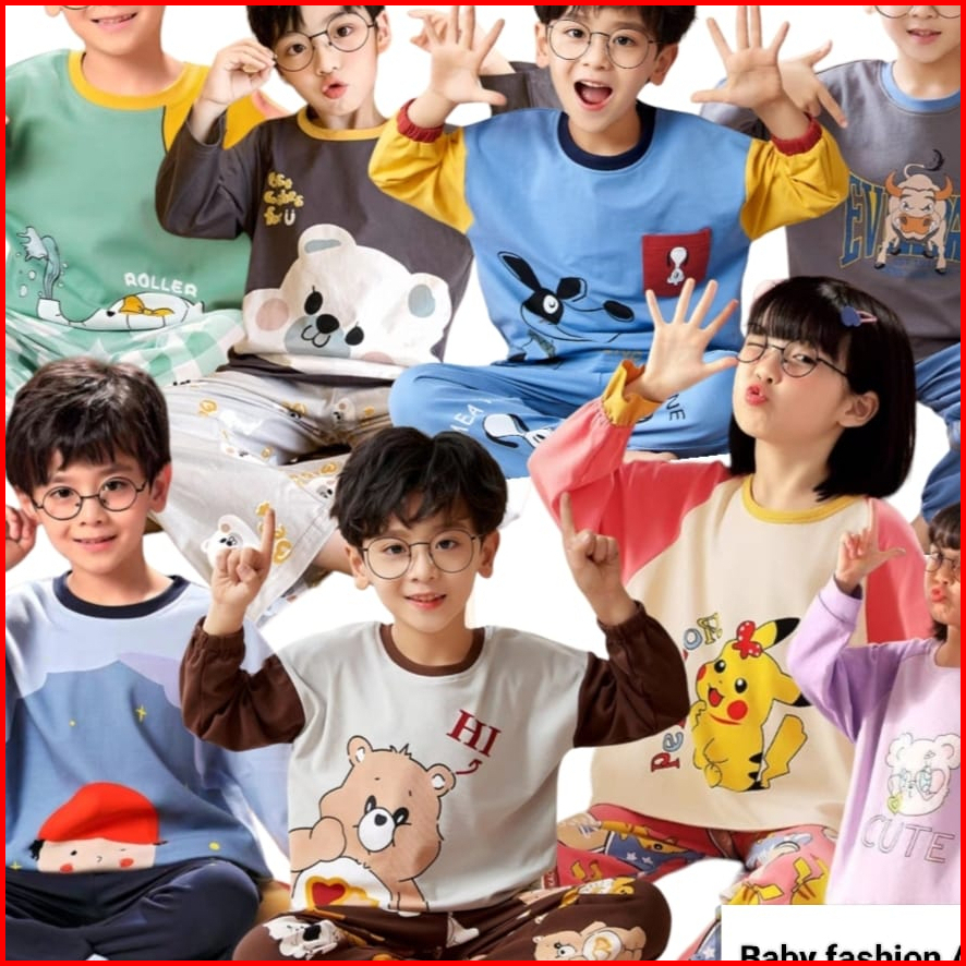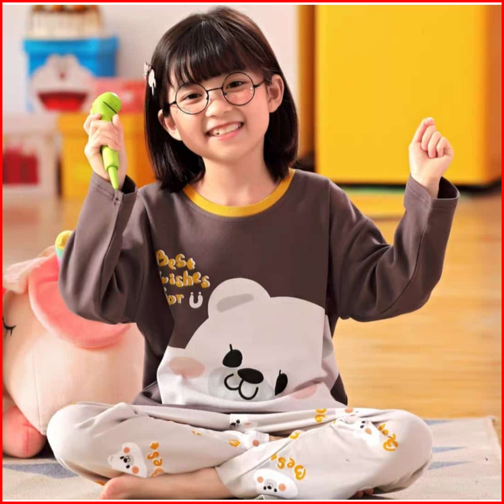 Rulif Setelan Piyama Baju Tidur Anak Perempuan Bahan Katun Import Lengan Panjang Celana Panjang Pakaian Anak Baju Tidur