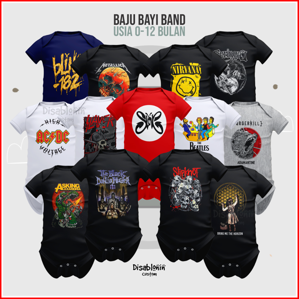 Jumper Bayi Band Metal Musik Nirvana Metalica Rock Bring Me The Horizon Bmth Newborn 0 - 12 Bulan