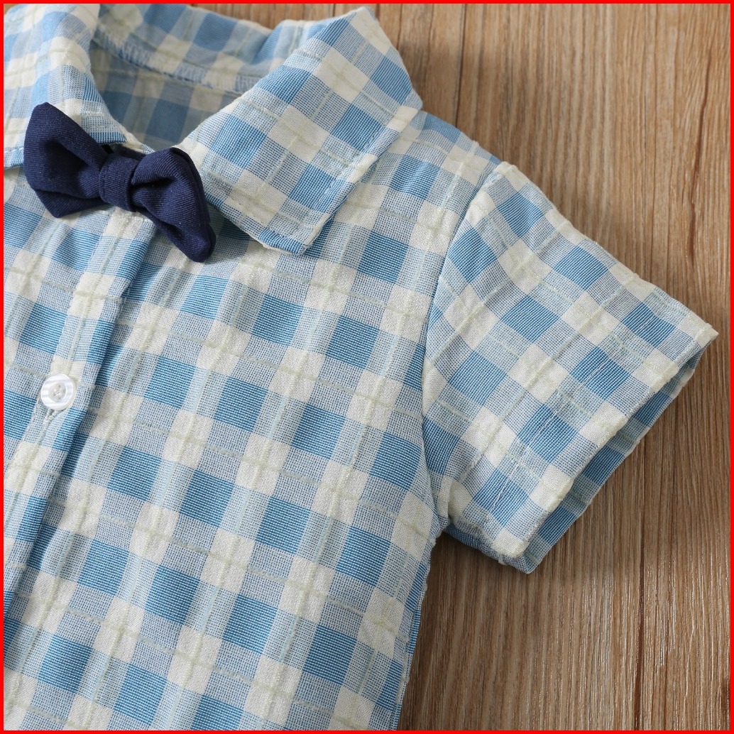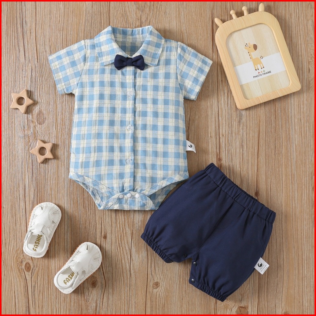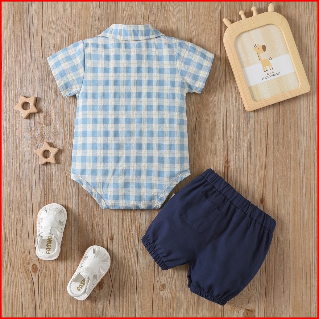 Jumper Bayi Lengan Pendek Model Segitiga Kotak Navy Baju Bayi Usia 0-18 Bulan Keren