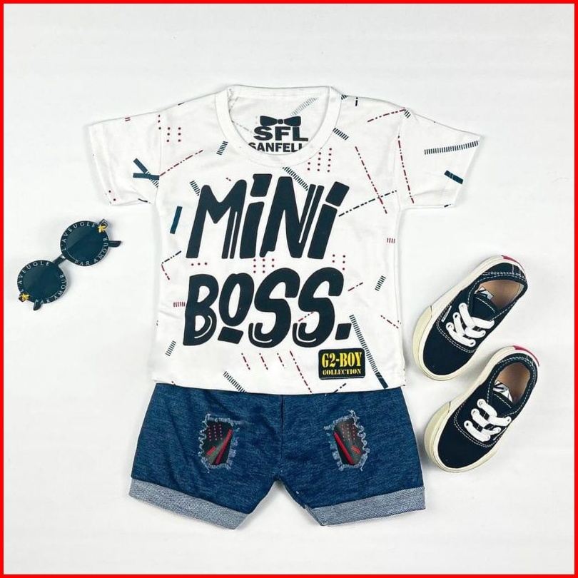 Setelan Bayi Gambar Mini Boss Set Anak Baby Laki-laki Kaos Celana