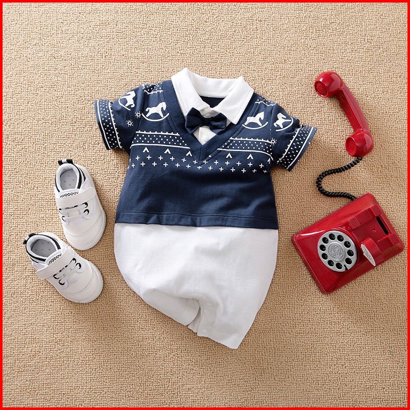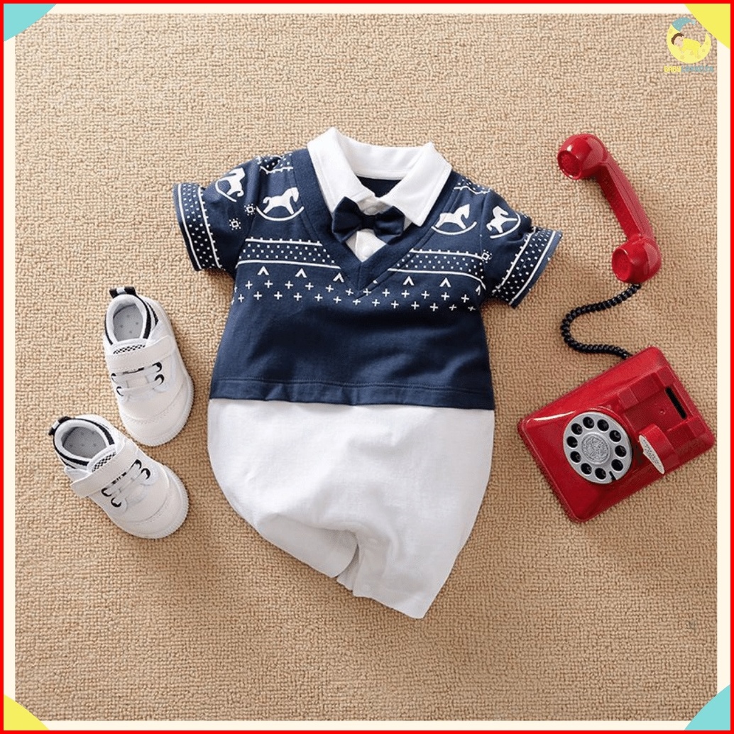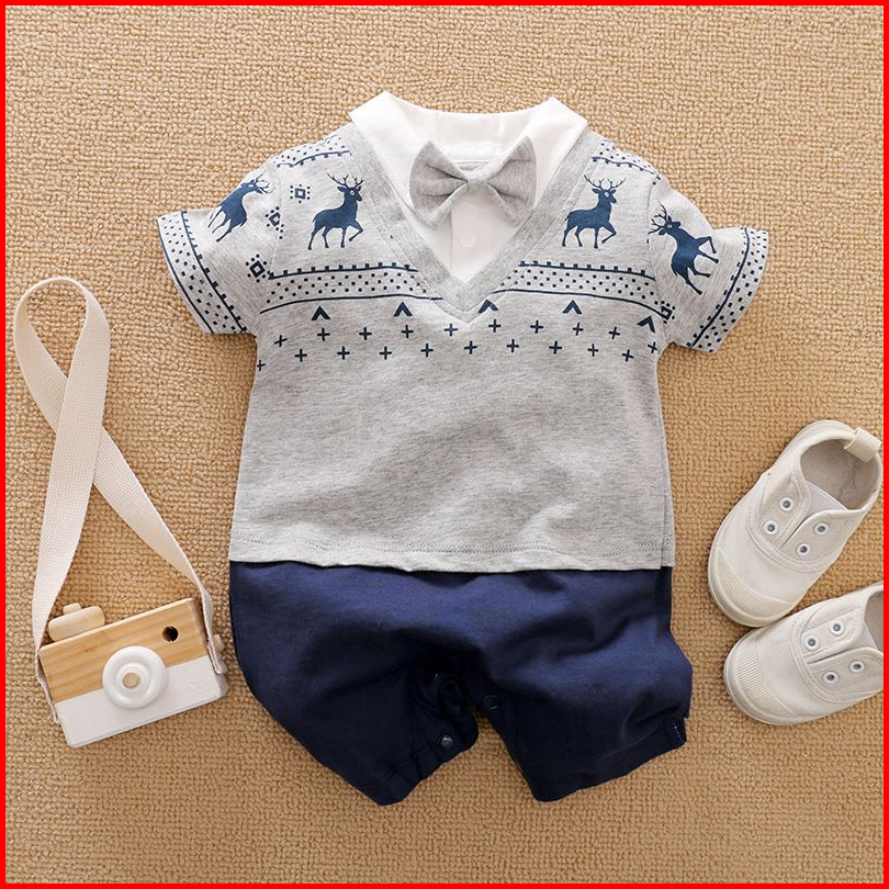 - Jumper Bayi Lengan Pendek Motif Rusa Navy Grey 0-18 Bulan Kualitas Premium Baju Bayi Natal Lucu Babylovanta