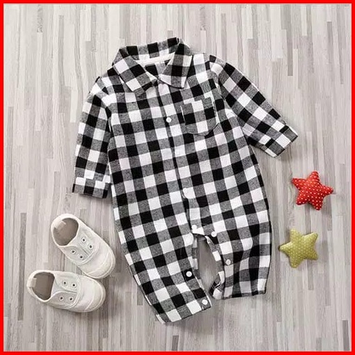 - Jumper Bayi Lengan Panjang Baju Bayi Laki-laki Baju Bayi Motif Kemeja Kotak-kotak Babylovanta