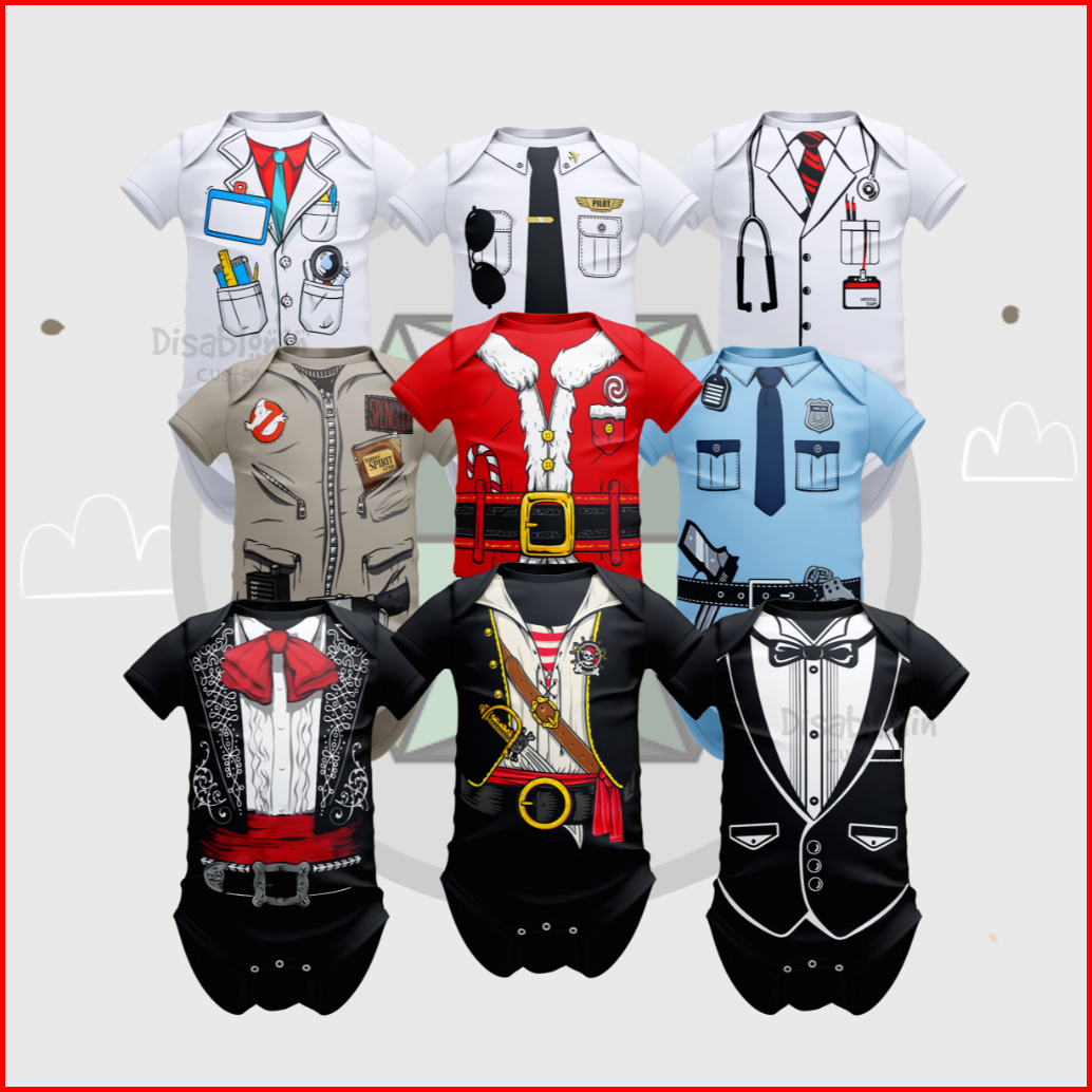 Baju Jumper Bayi Karakter Profesi Jumper Baju Bayi Gambar Profesi Usia Newborn 0-12 Bulan.