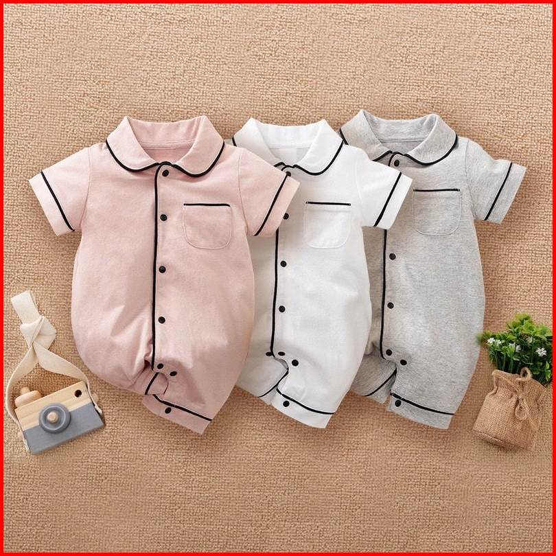 Jumper Bayi Kembar Lengan Pendek Unisex Warna Pink Abu Putih Polos