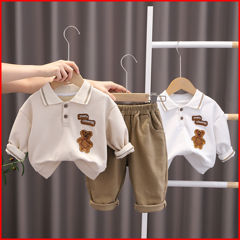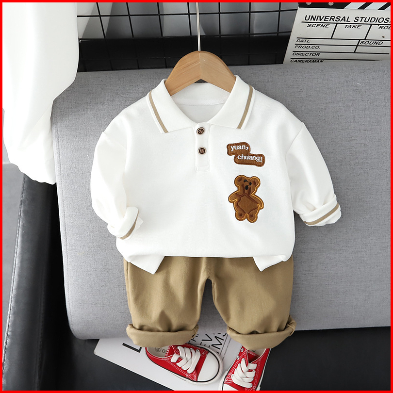 Setelan Premium Anak Laki-laki Usia 6 Bulan-5 Tahun Motif Yuan White Cream Bear Set Baby Lucu - Babylovanta