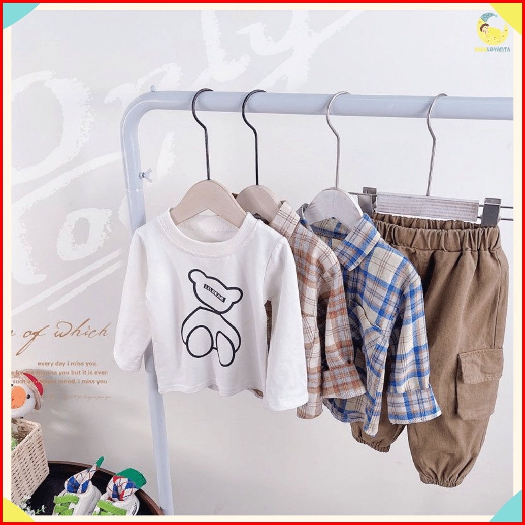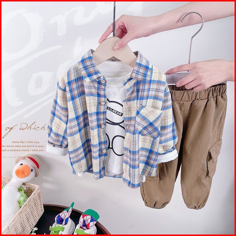 Babylovanta - Setelan 3in1 Kemaja Anak Laki Laki Motif Kotak Kotak Baju Baby 0-5 Tahun Baju Premium