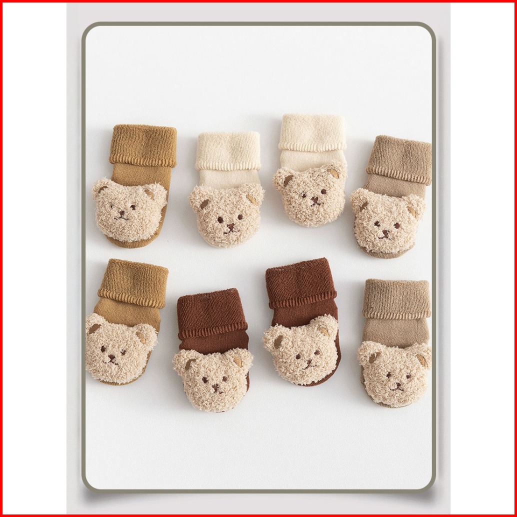 Kaos Kaki Anak Unisex Model Head Bear 3d Usia 0-12 Bulan Premium Kaos Kaki Anti Slip Bayi