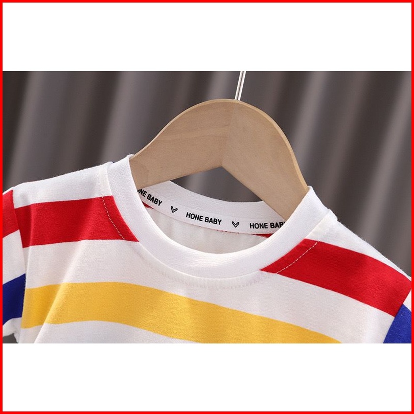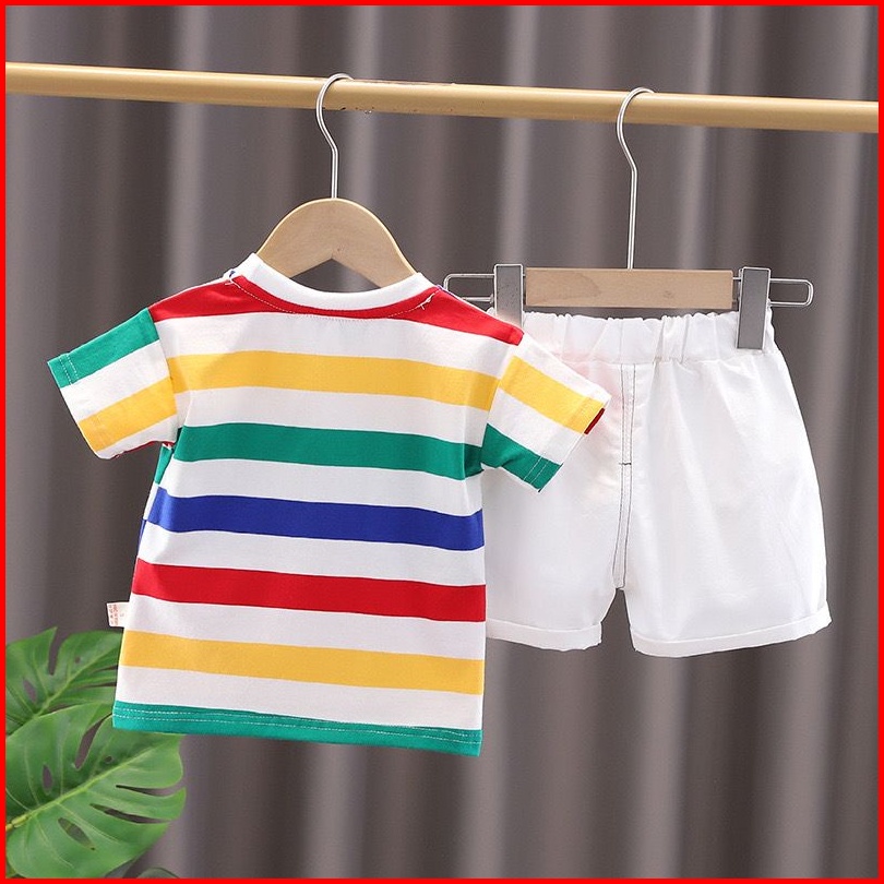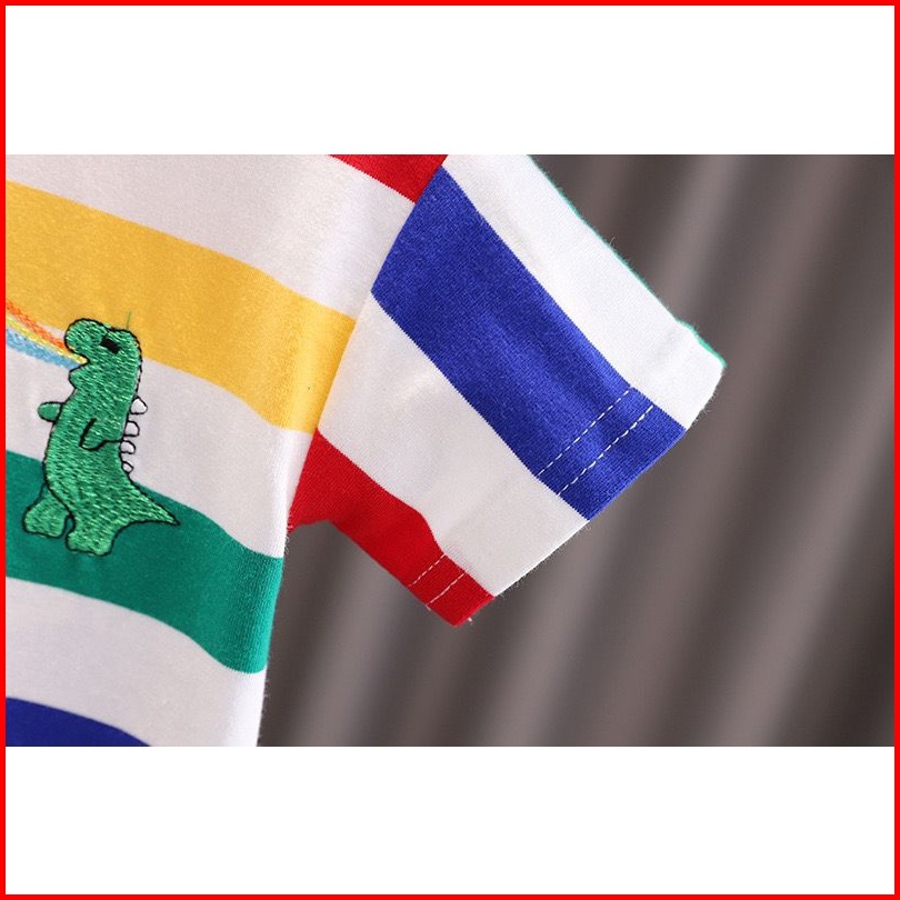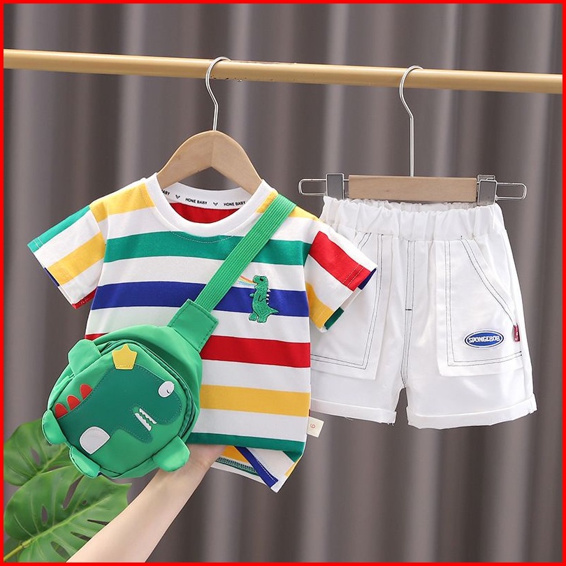 - Setelan Anak Laki Laki Tas Dino Lucu Usia 0-5 Tahun Motif Rainbow Dino Baju Anak Lakilaki Lengan Pendek Babylovanta