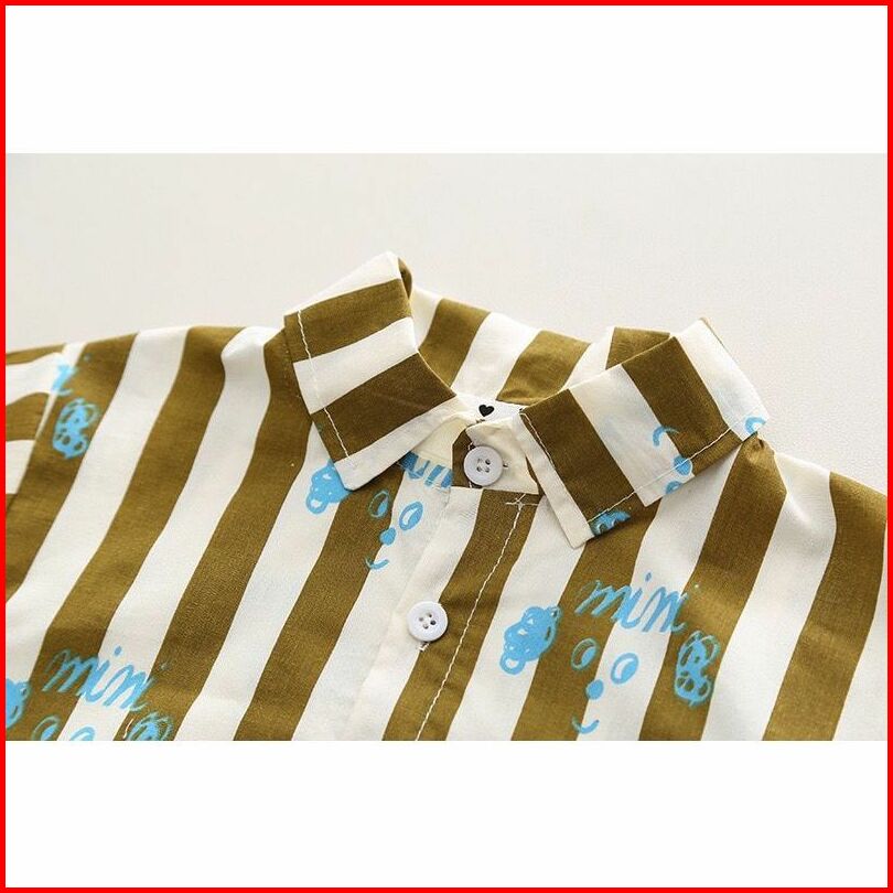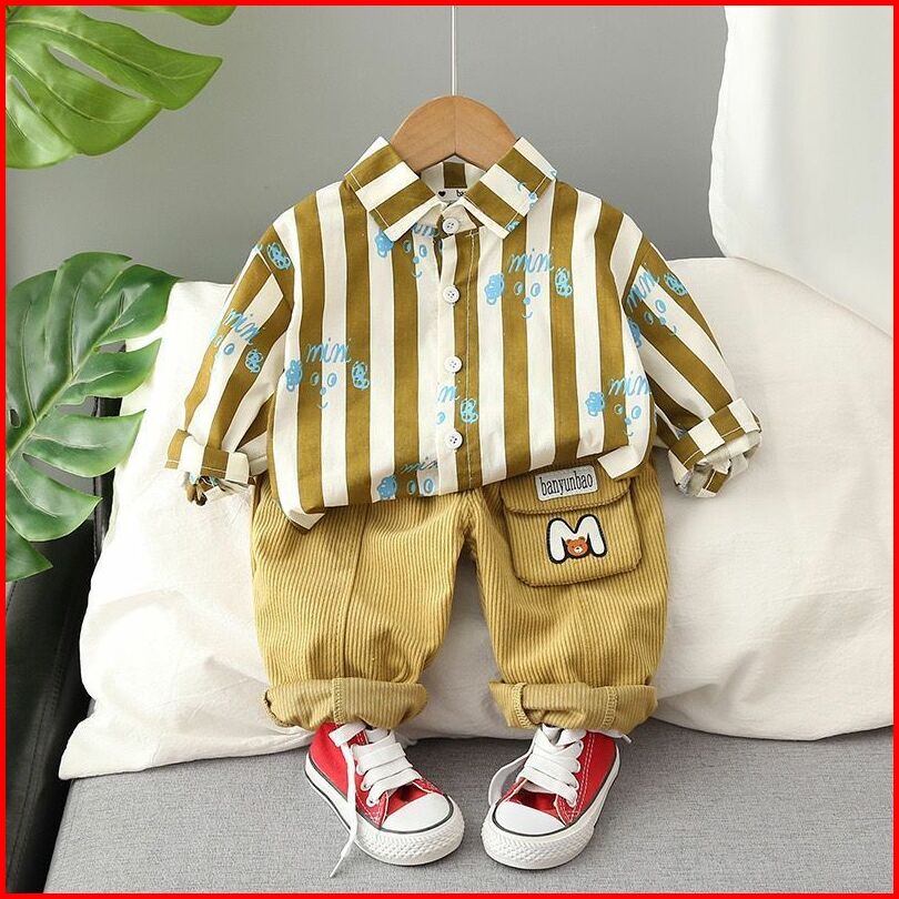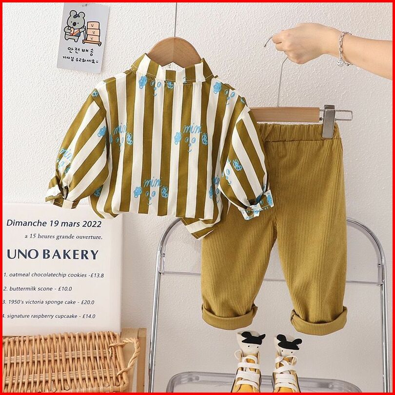 Setelan Kemeja Anak Laki Laki Motif Salur Green Keren Premium Usia 6 Bulan - 5 Tahun Baju Kekinian