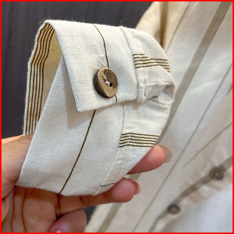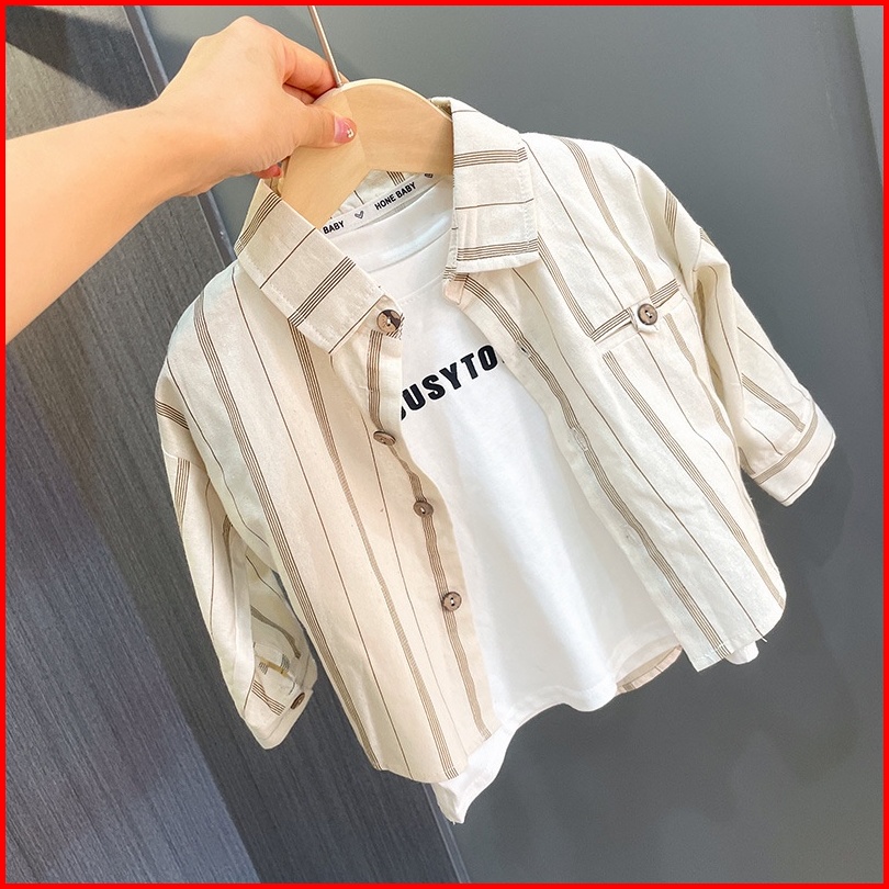 Atasan Kemeja Anak Laki-laki Motif Broken White Salur Usia 6 Bulan - 5 Tahun Bahan Premium