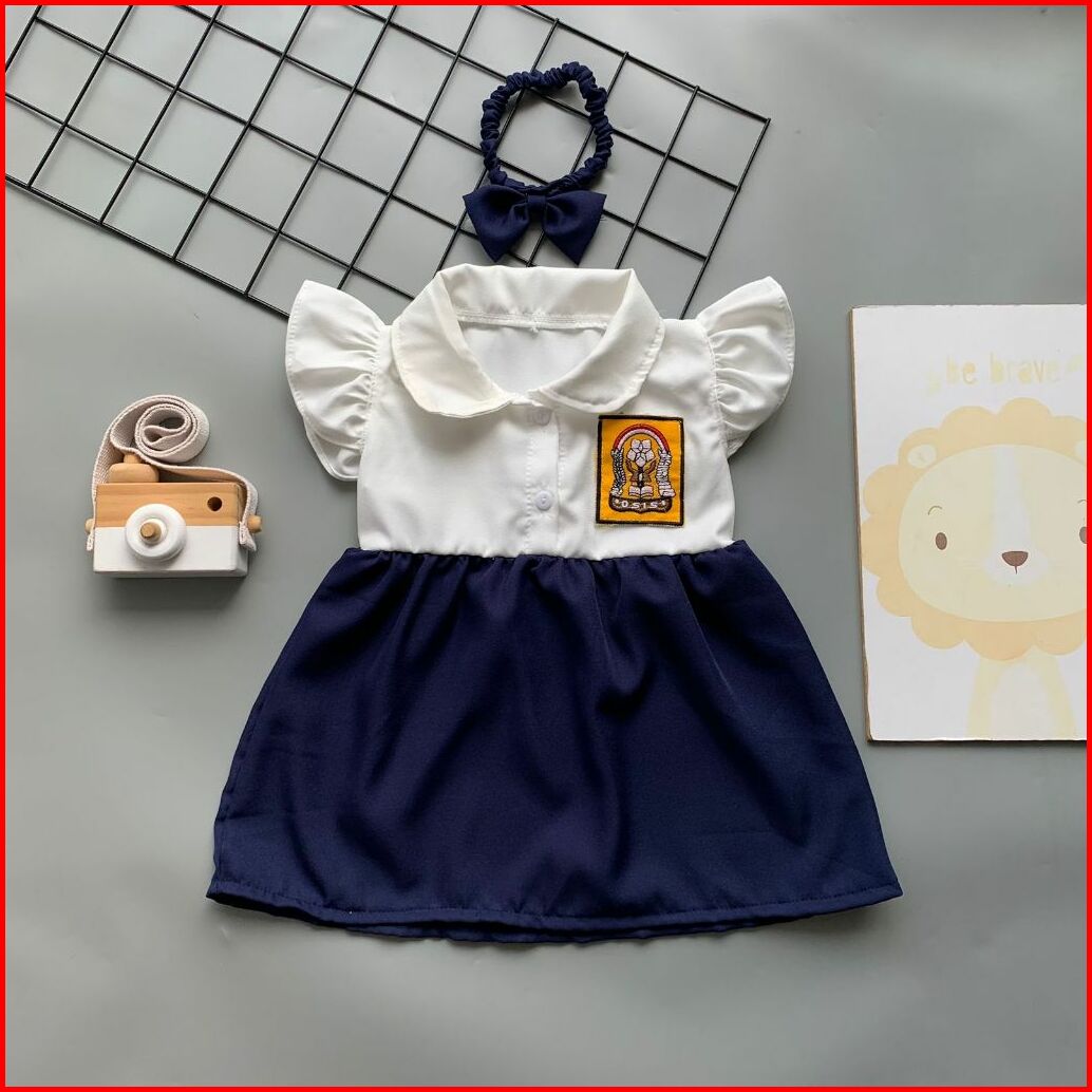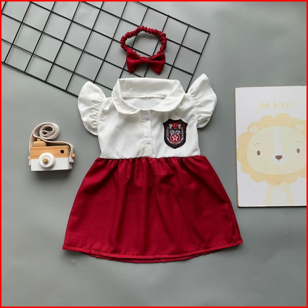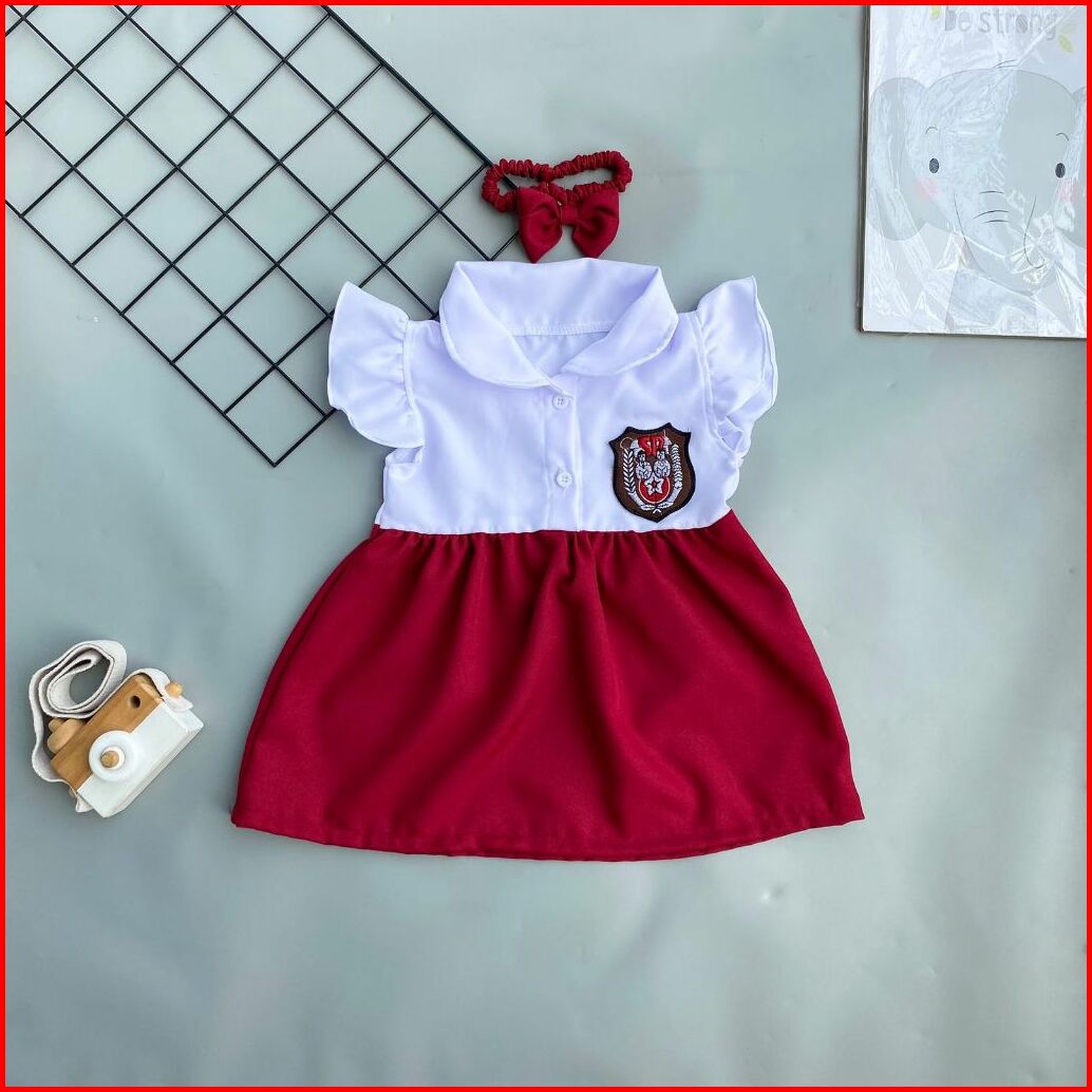 Babyshopss -baju Dress Seragam Anak Baby Free Bandana Lucu Untuk Pergi Jalan Model Kekinian Anak Perempuan-uni