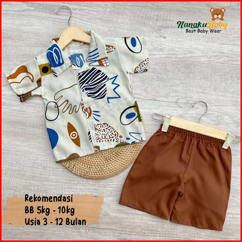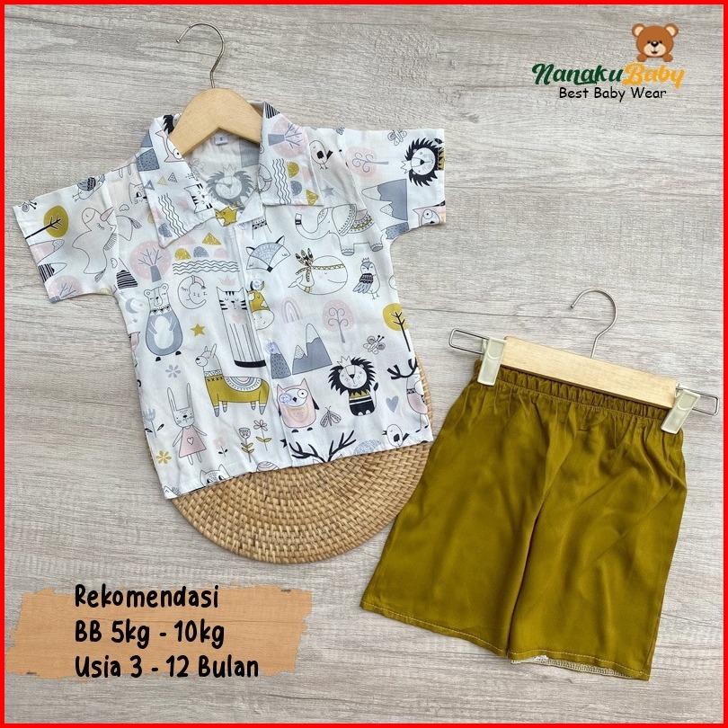 Nanaku Baby - Setelan Baju Bayi Kemeja Bayi One Set Rayon Motif Animal Usia 3-12 Bulan