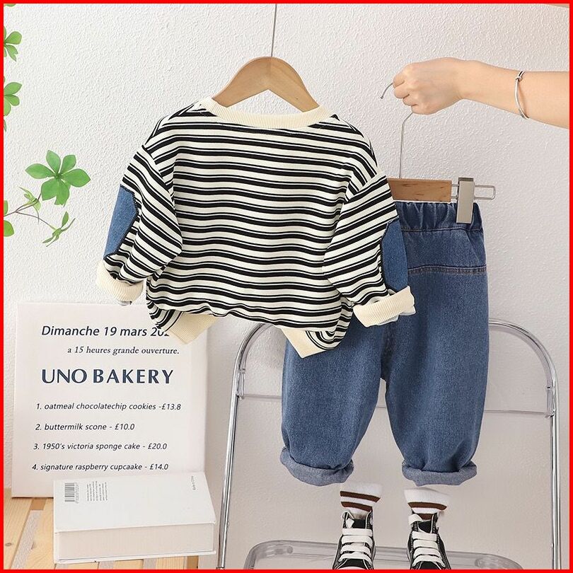 Setelan Baju Bayi Laki Laki Premium Usia 6 Bulan - 5 Tahun Motif Garis Pocket Lengan Panjang