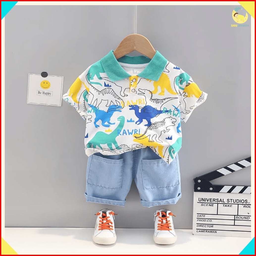 - Setelan Anak Motif Dino Rawr Baju Anak 0-5 Tahun Set Pakaian Anak Lucu Baju Dino Anak Babylovanta