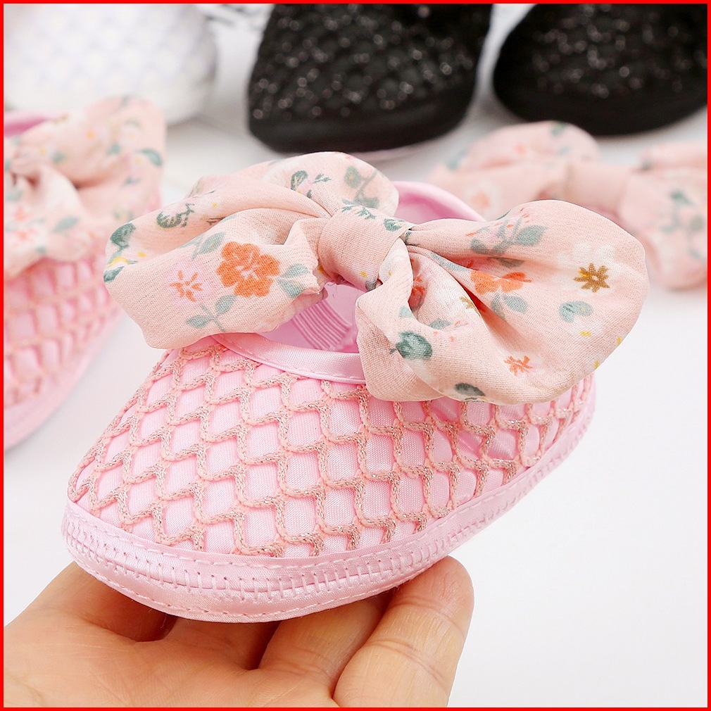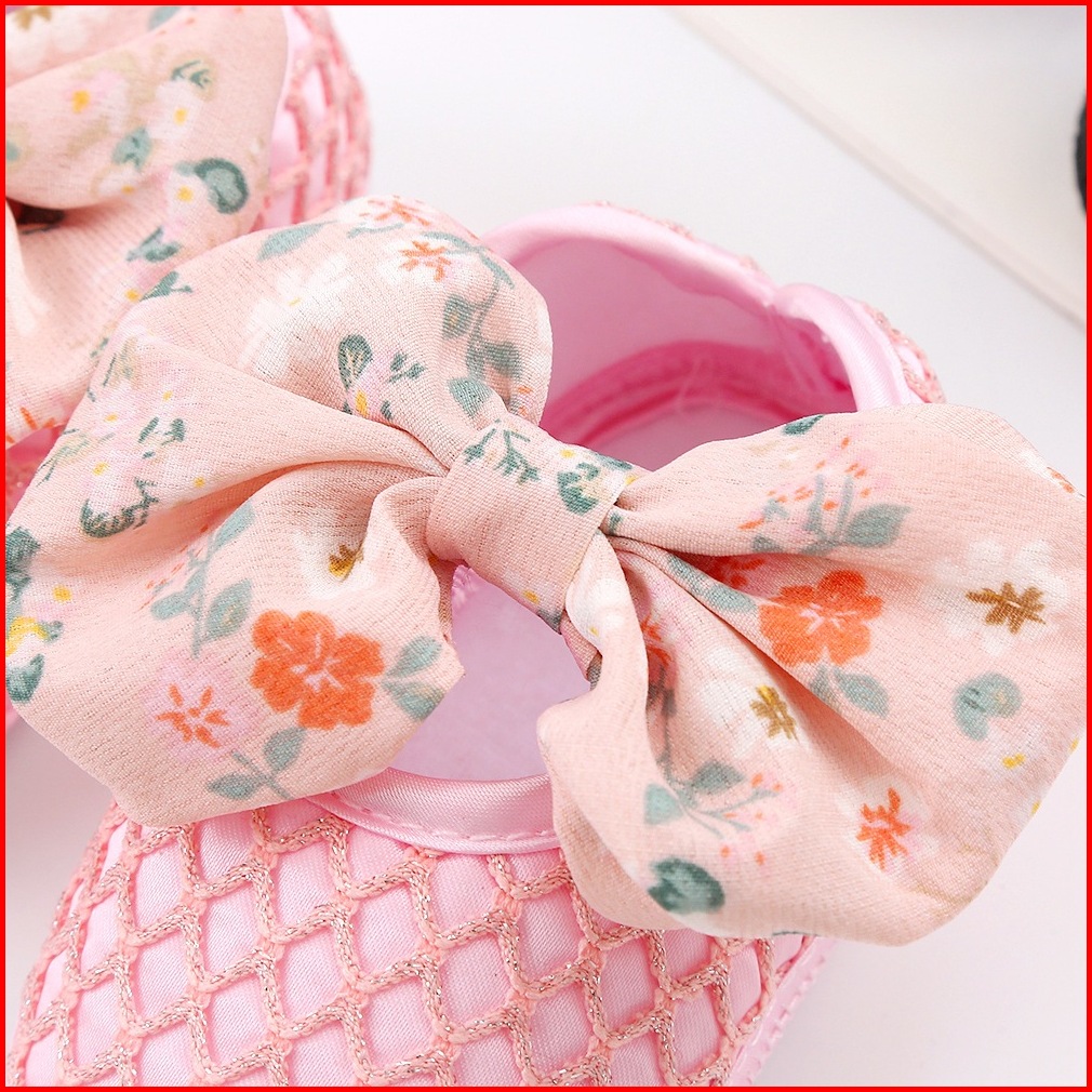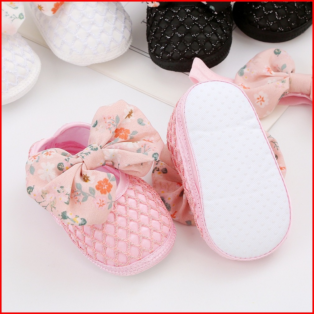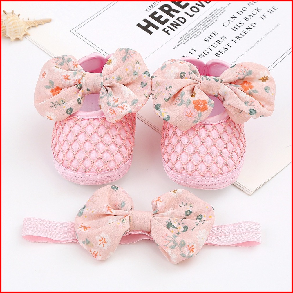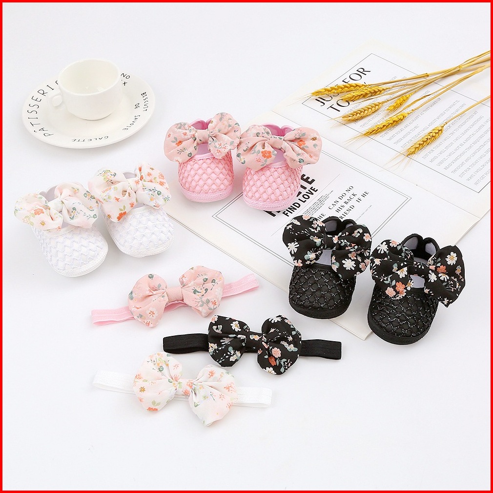 Sepatu Bayi Perempuan Motif Pita Bunga Lucu Free Bando Usia 0-18 Bulan Sepatu Bayi Prewalker Premium