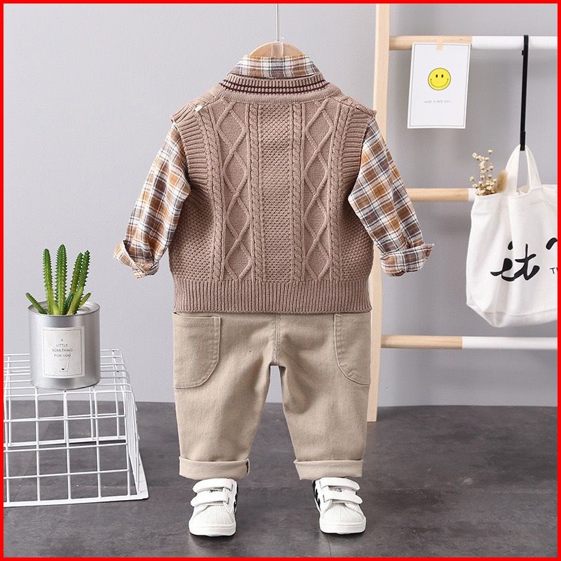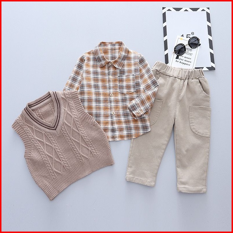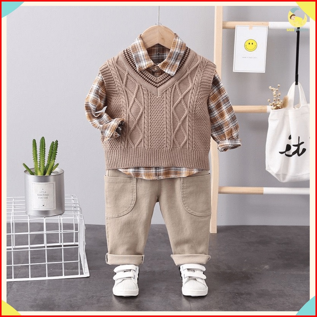 Kemeja Premium Anak Laki Laki 0-4 Tahun 3in1 Motif Basic Brown Baju Anak Cowok