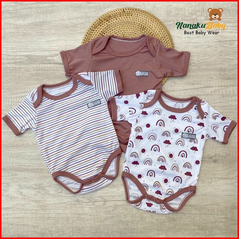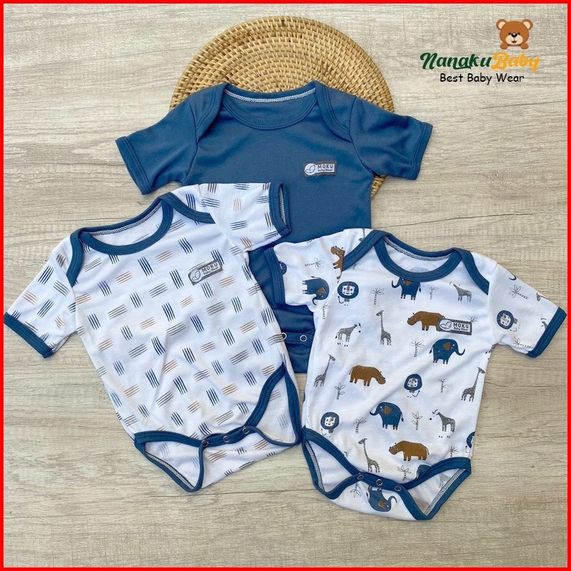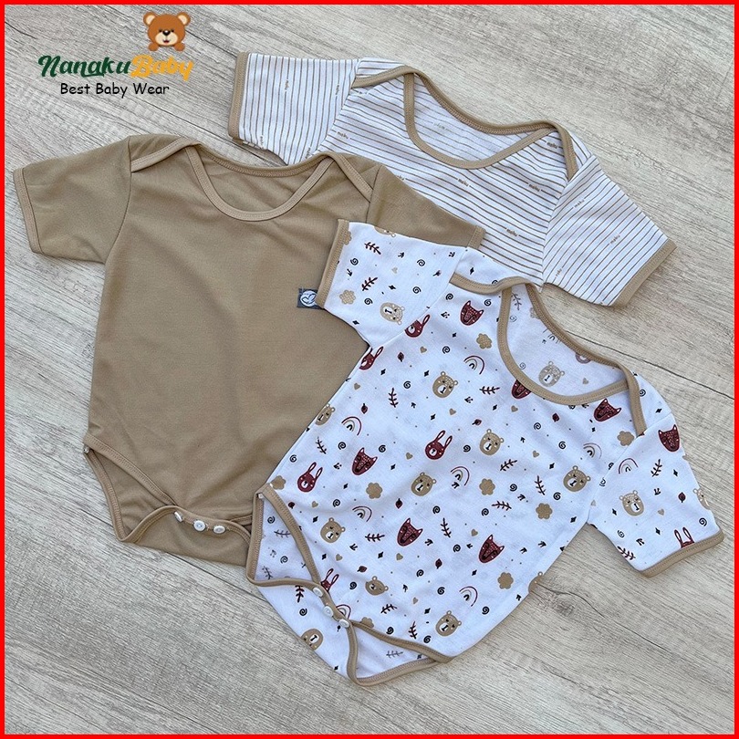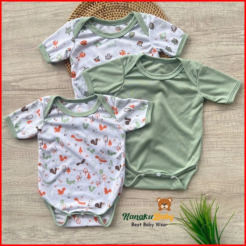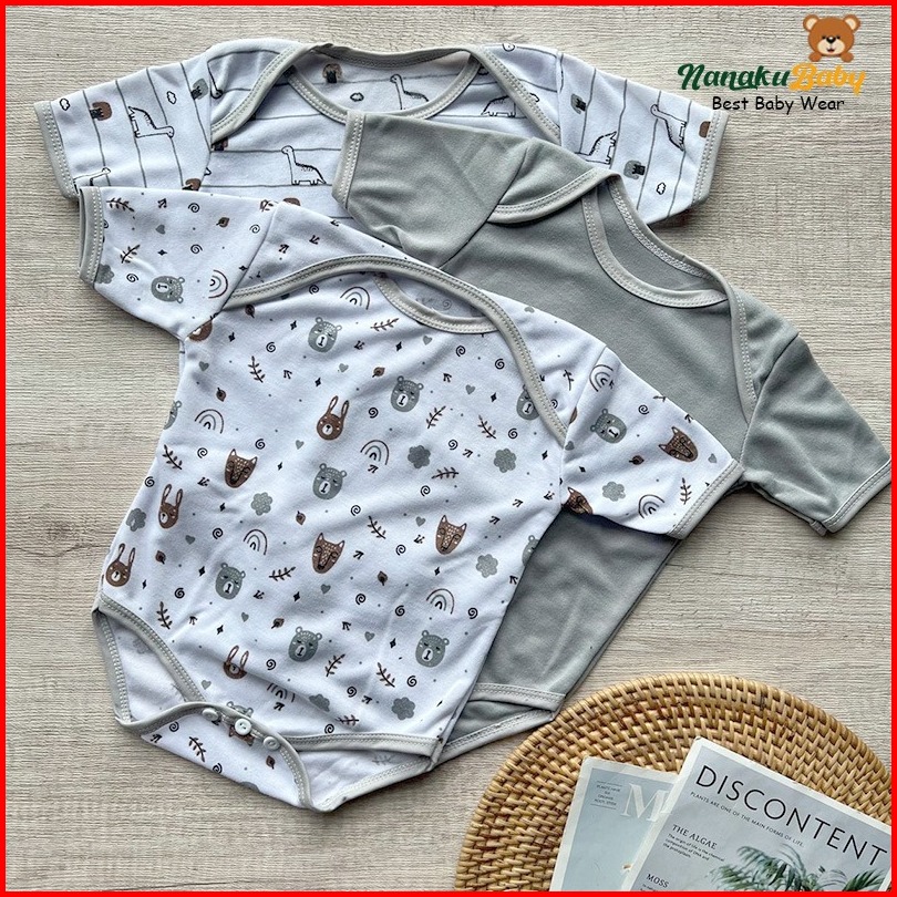 Nanaku Baby - Paket Isi 3 Pcs Jumper Pendek Baby Newborn Motif Laki Laki Perempuan Usia 0-6 Bulan