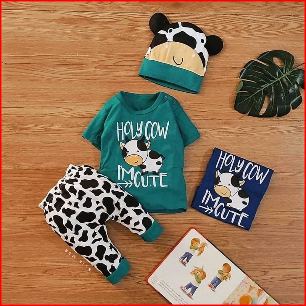 Mds Setelan Baju Anak Bayi Laki-laki Sapi Free Topi 1 Ukuran Usia 0-9 Bulan