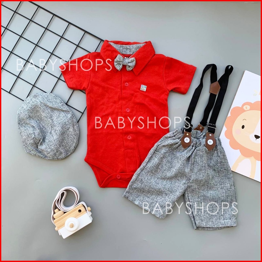 Babyshop- Baju Setelan Bayi Laki Laki Suspender Bahan Adem Untuk Pergi Jalan Ke Mall Murah Bestseller Kekinian Untuk Bay