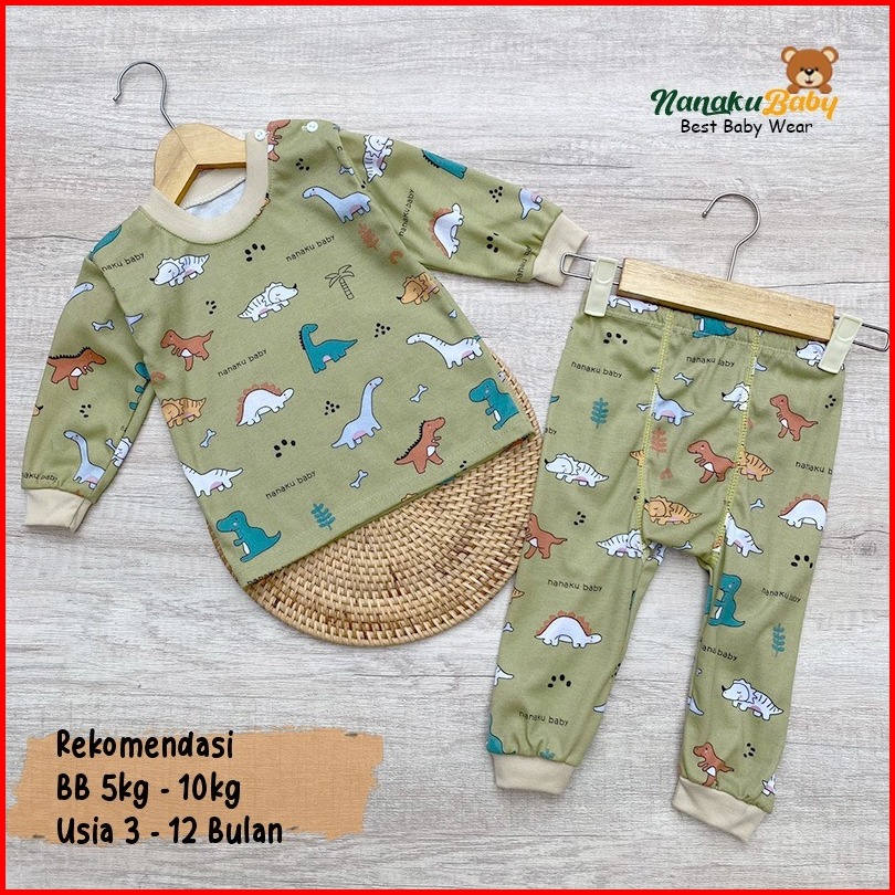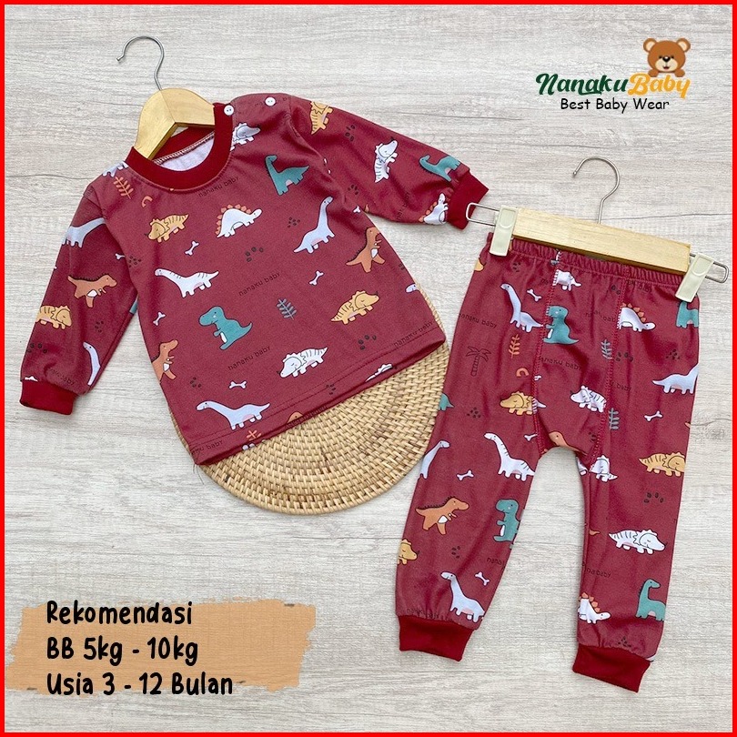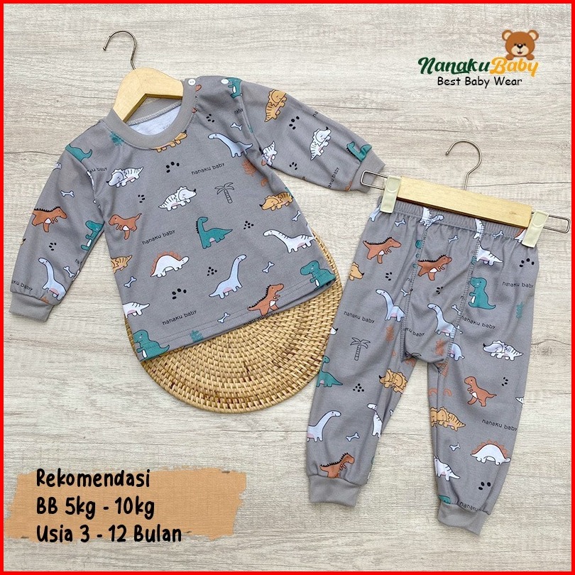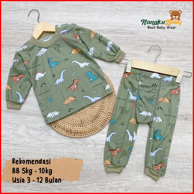Nanaku Baby - Setelan Baju Bayi Piyama Bayi Lengan Panjang Motif Printing Dino Usia 3-12 Bulan