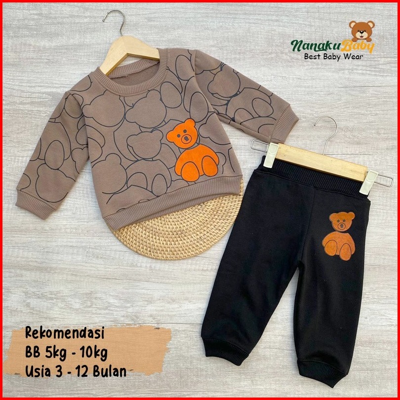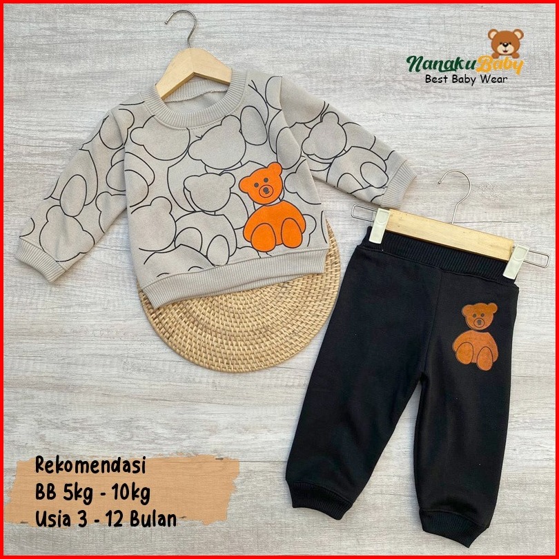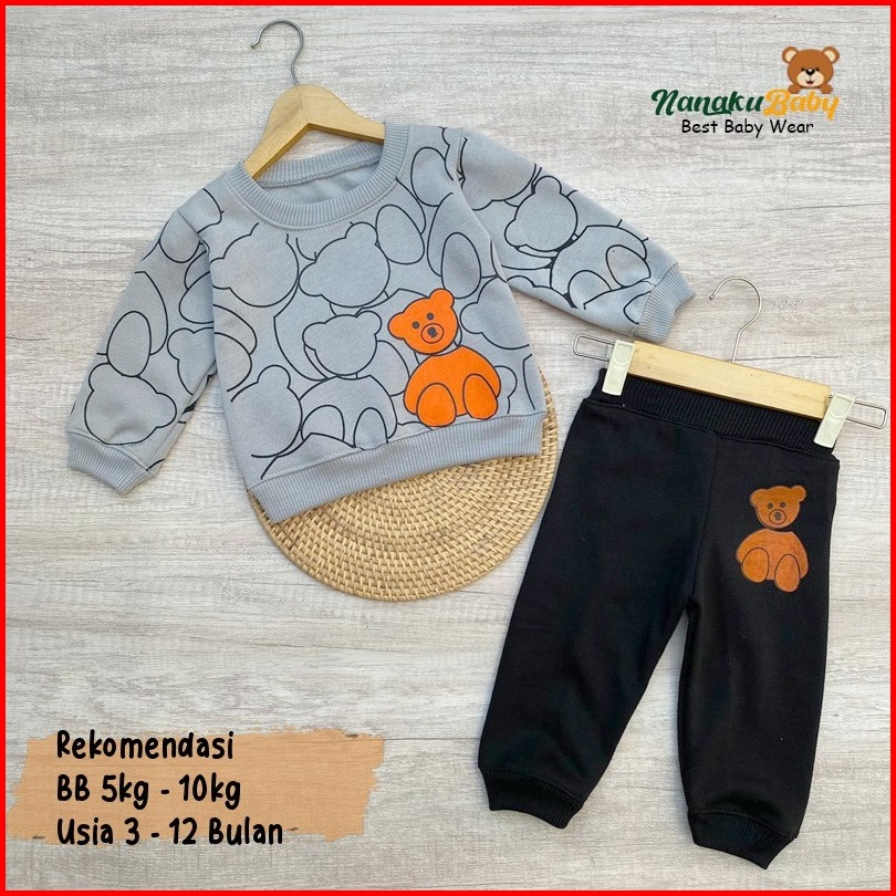 Nanaku Baby - Setelan Baju Bayi Setelan Sweater Bayi Celana Jogger Usia 3-12 Bulan
