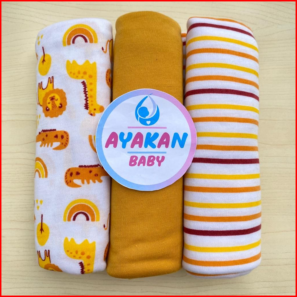 Ayakan Baby - 3 Pcs Bedong 110x90cm Bedong Bayi Full Sablon