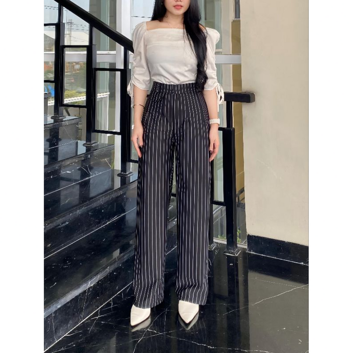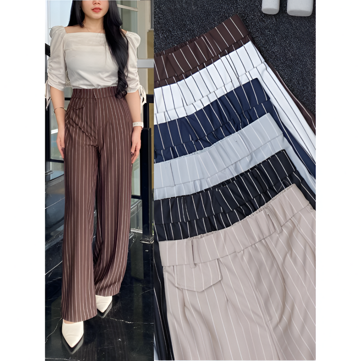 Celana Kerja Wanita Celana Salur Wanita Oro Pants Loose Pants Highwaist Wanita Premium Anti Kusut