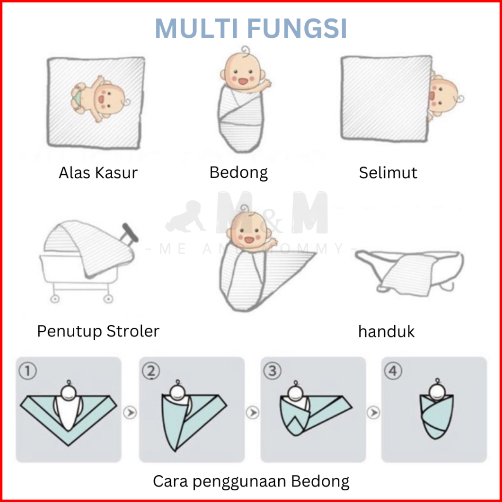 Bedong Peralatan Kain Gendong Bayi Baru Lahir Multifungusi Baby Muslin Swaddle Seimut Bedong Baby Swaddle Cotton Muslin