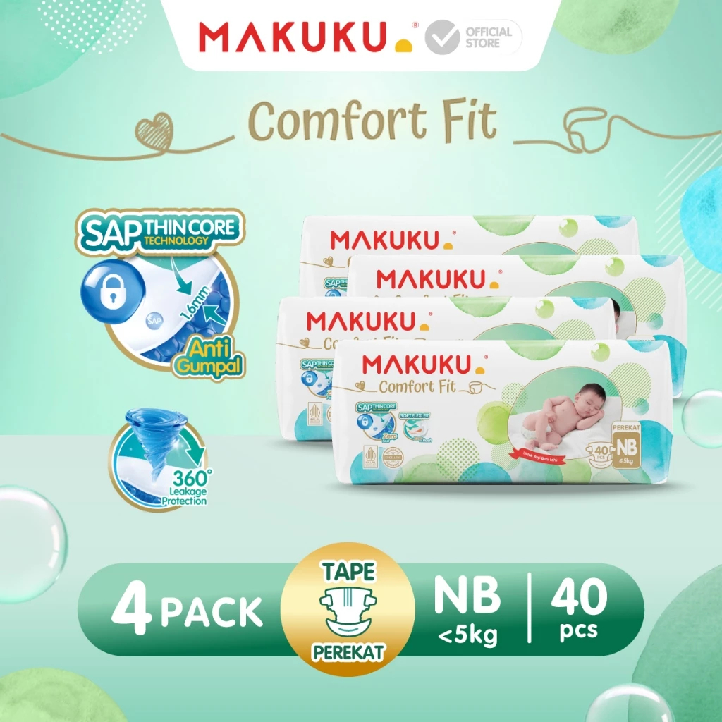 MAKUKU SAP Diapers Comfort Fit Pants Tape NB40/ S30 / M28 / L26 / XL24 / XXL22 Popok Bayi Celana/Perekat