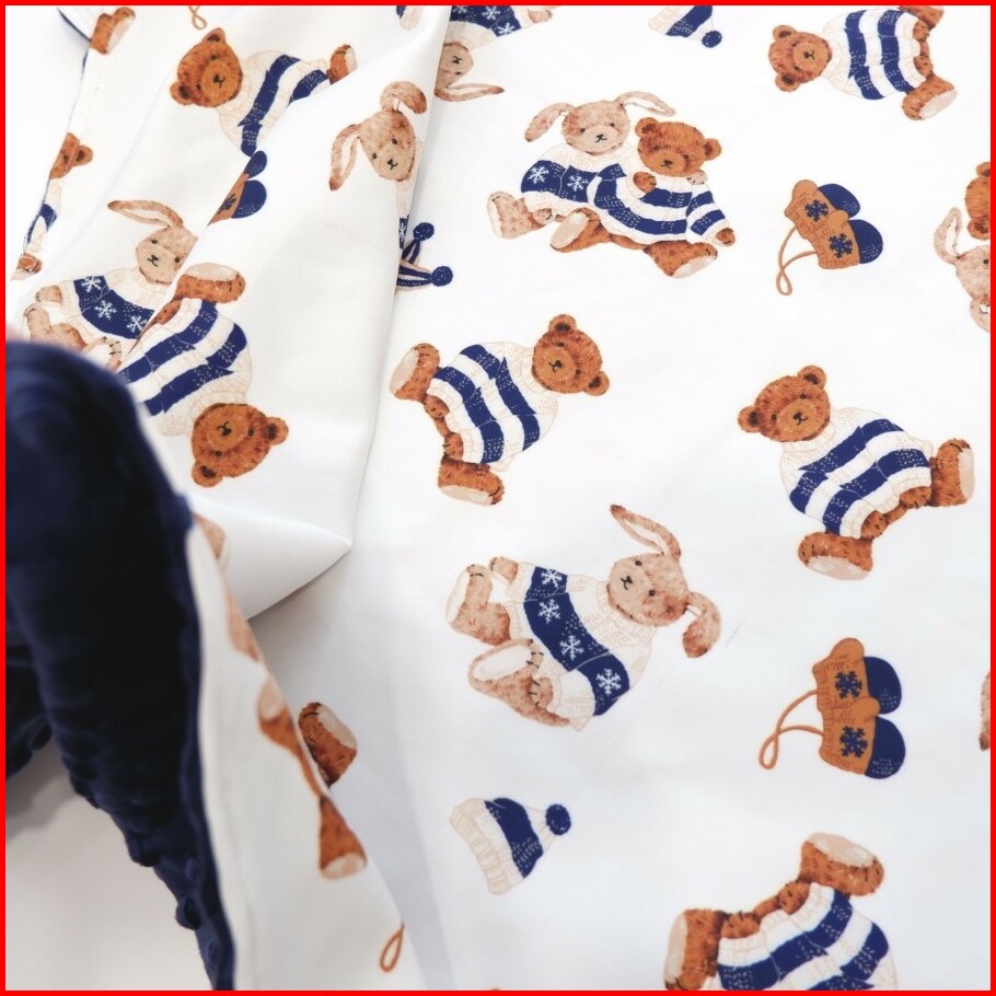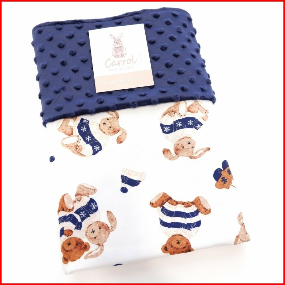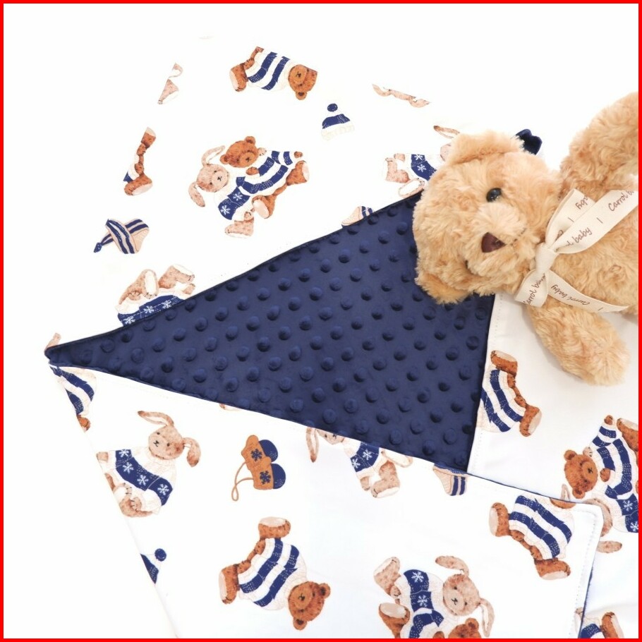 Carrol Baby Blanket Teddy Bear With Rabbit Sweater Navy - Minky Navy