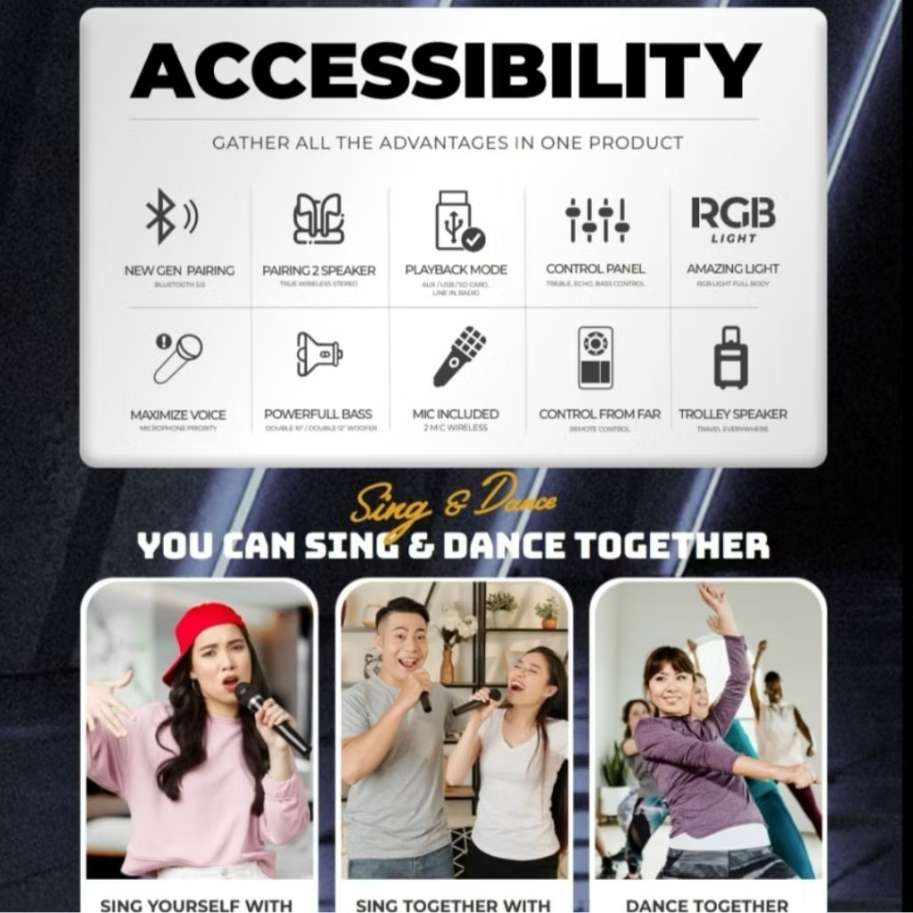 Niko Speaker Trolley Bluetooth USB AUX & SD Card OXXO (Double 12) Garansi Resmi