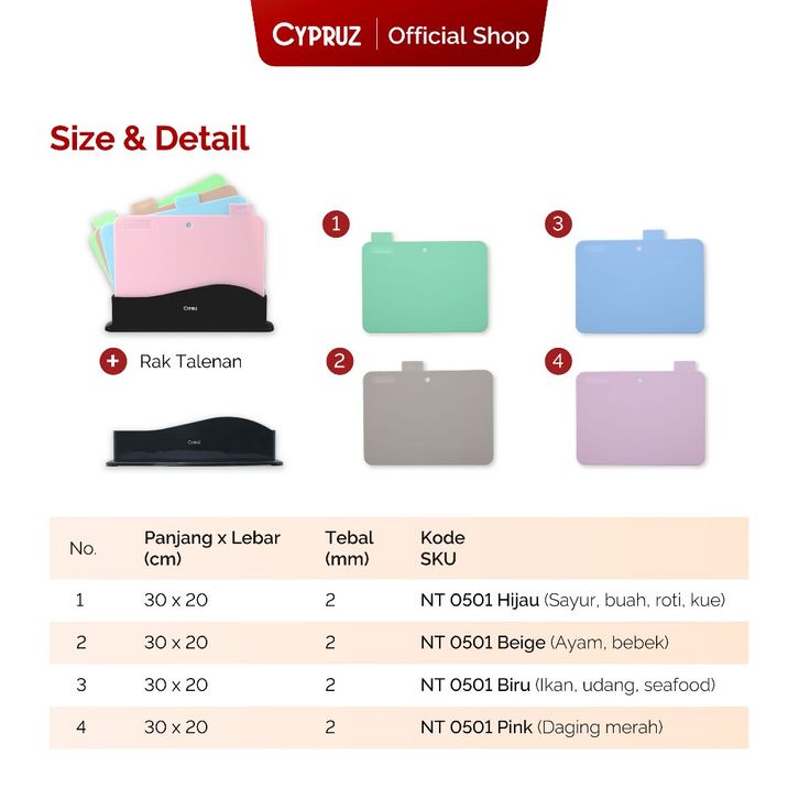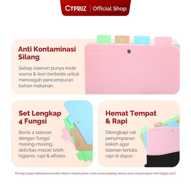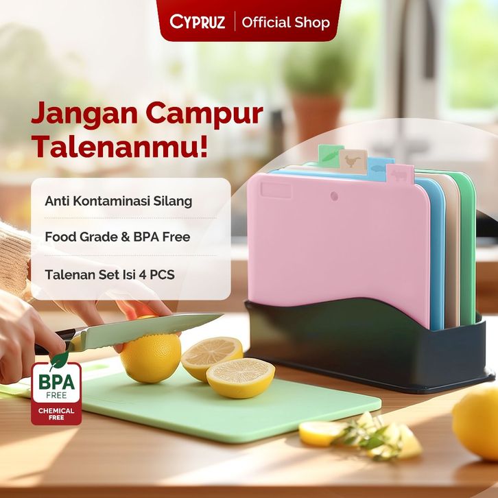 TALENAN MULTIFUNGSI CYPRUZ 4 PCS | Chopping Board Set Foodgrade Praktis & Higienis