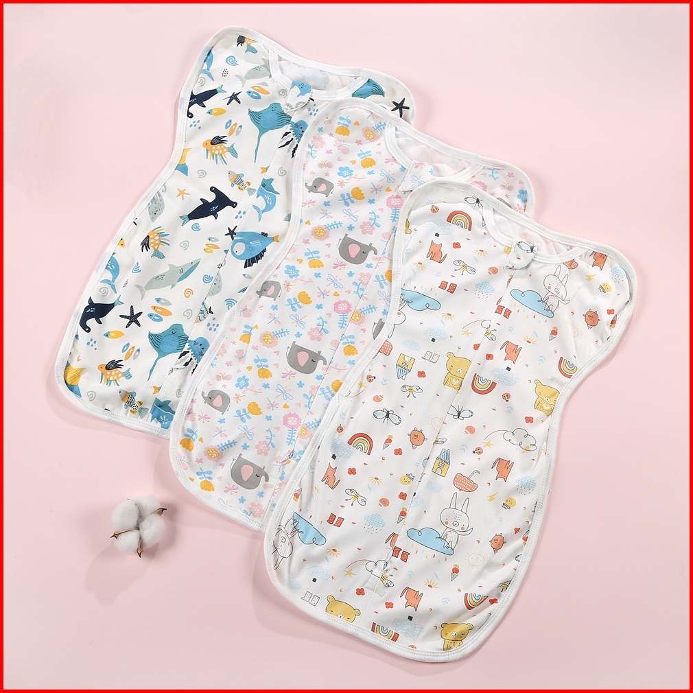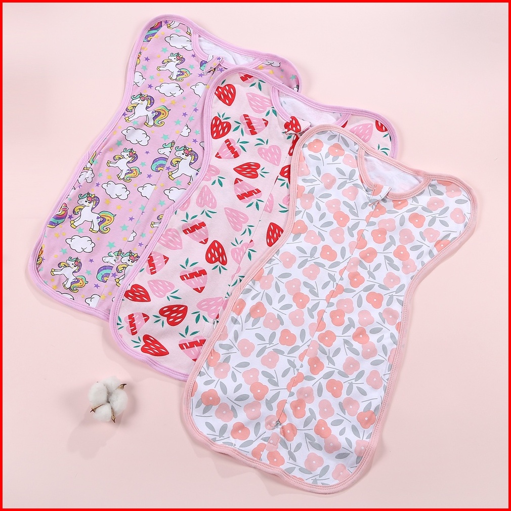 Newborn Bedong Bayi Zipper Swaddle Selimut Bayi Cotton Baby Swaddle Zip Wrap Topi Bayi Wrap