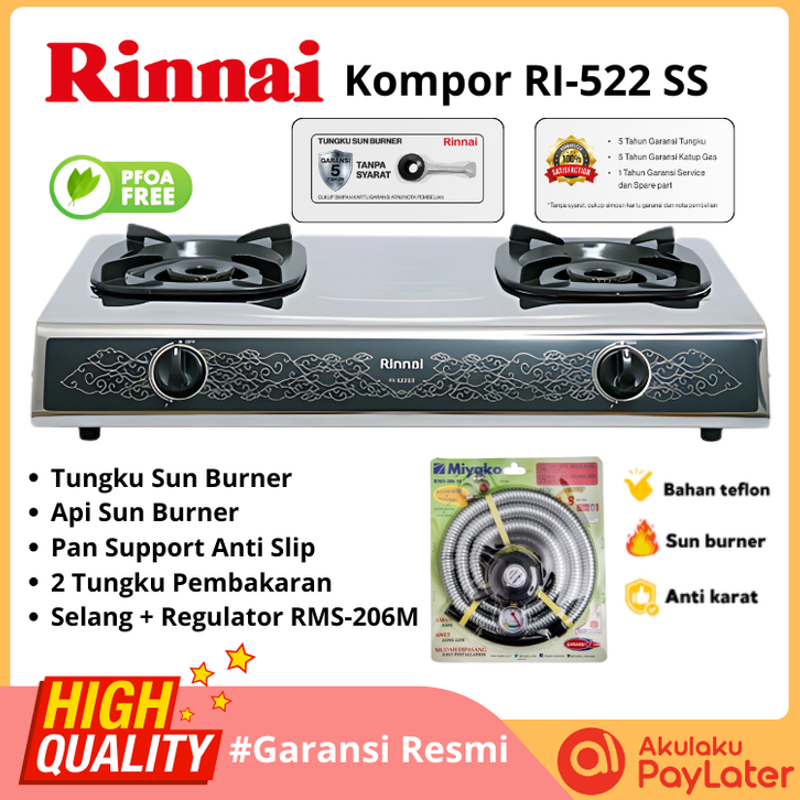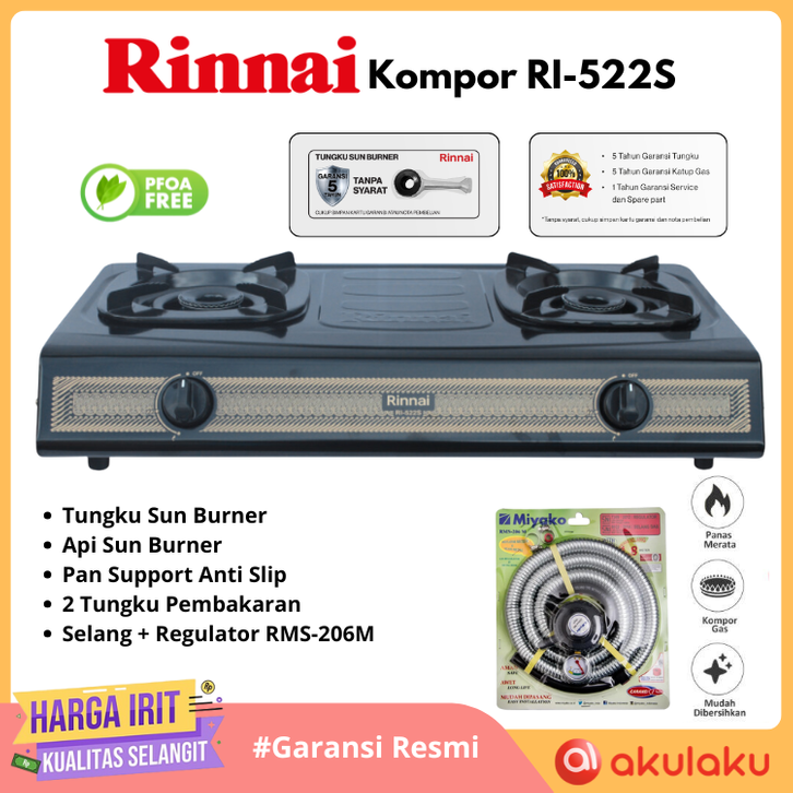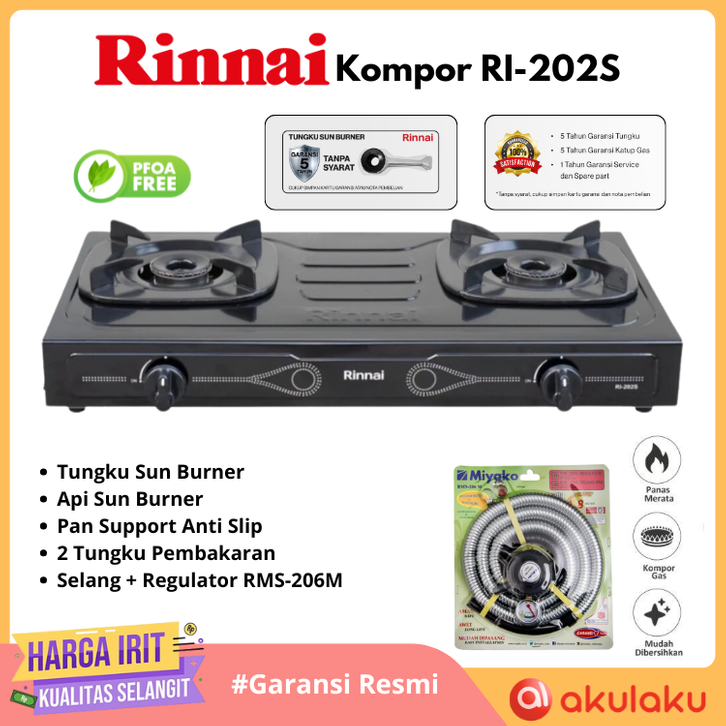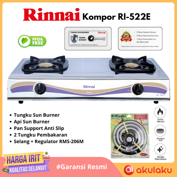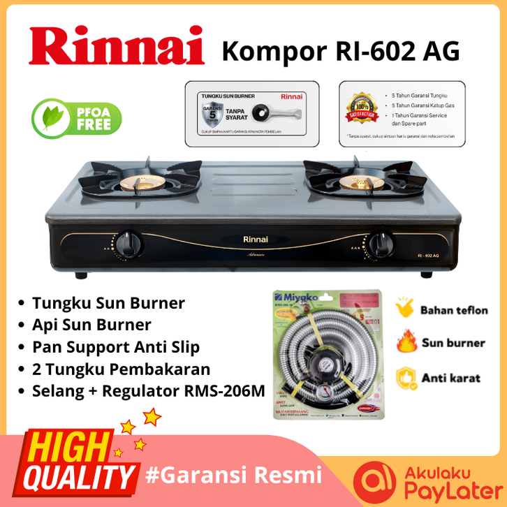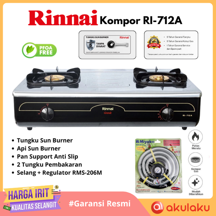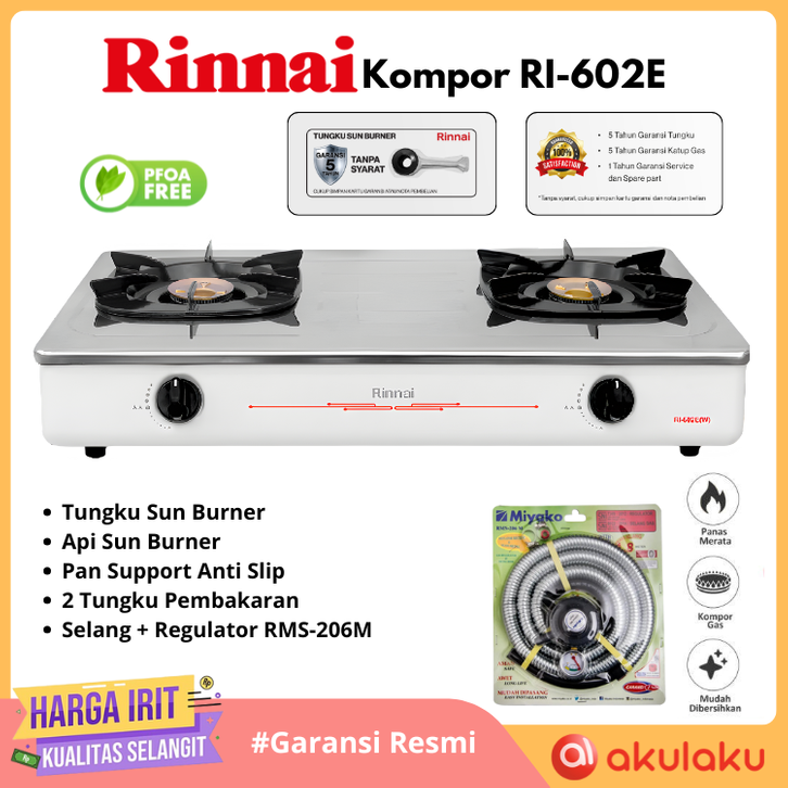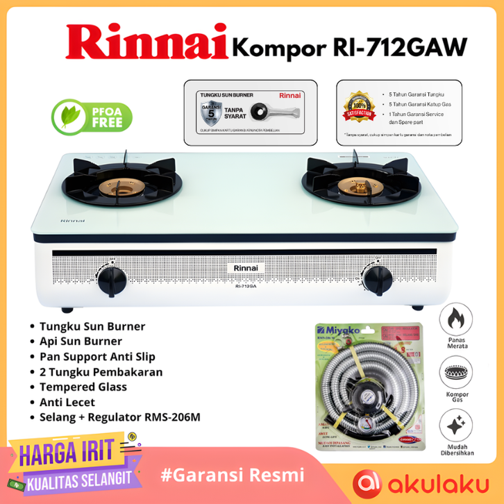 [Mall] Kompor Gas Rinnai 2 Tungku RI-712GAW + Selang Regulator Tempered Glass Anti Gores Stainless Steel - Official Stor