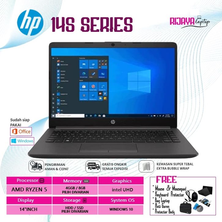 [ READY ] LAPTOP HP 14 AMD RYZEN 5-5500U RAM 8GB/SSD 512GB 14" FHD WINDOWS 10 FREE TAS LAPTOP - MOUSE