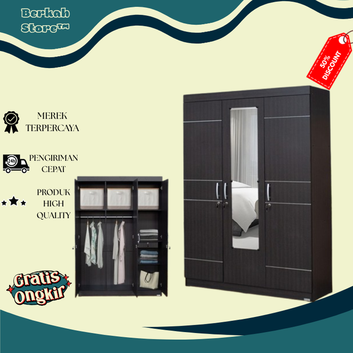Lemari Pakaian Baju Putih Modern Minimalis 3 Pintu + Meja Rias termurah terlaris gratis ongkir