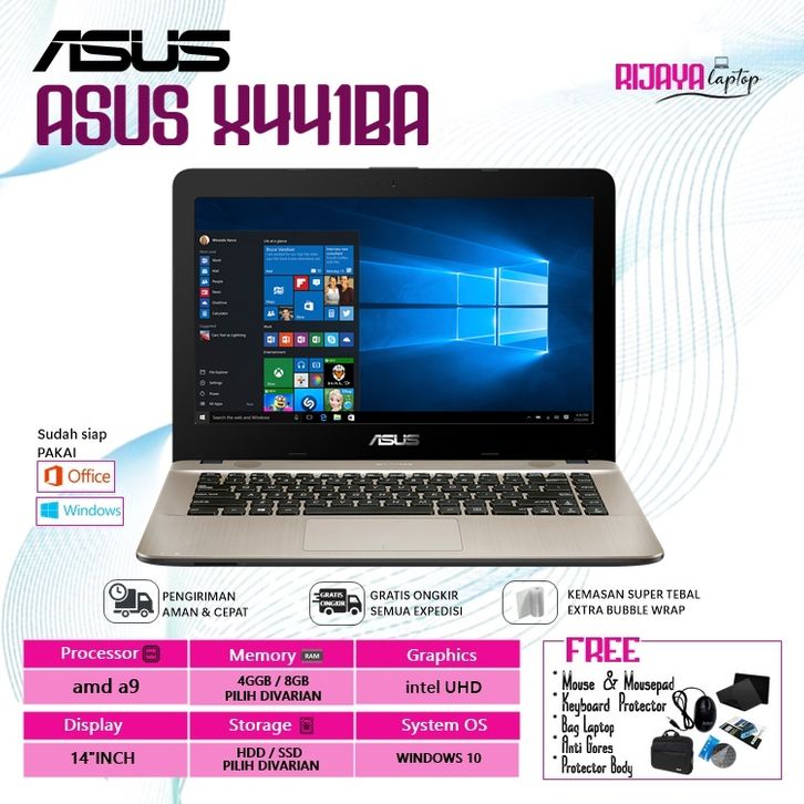 [ PROMO ] LAPTOP ASUS X441BA AMD A9-9425 RAM 8GB/SSD 512GB 14 INCH WIN10 FREE TAS LAPTOP-MOUSE