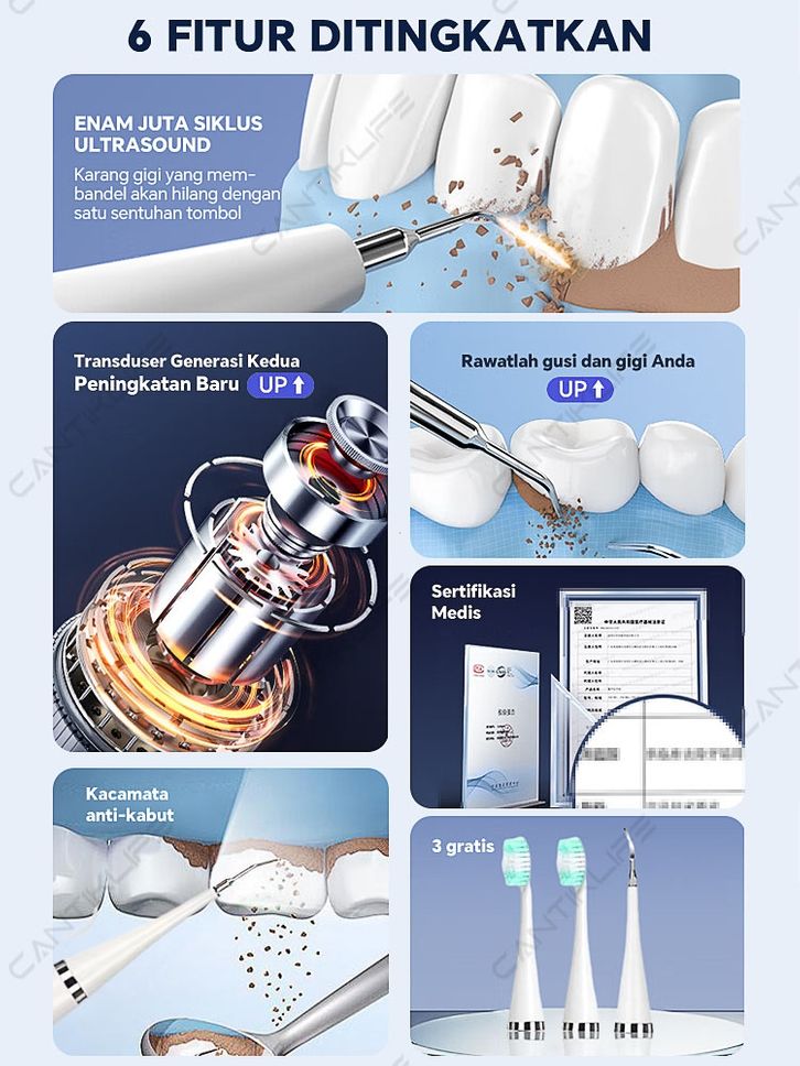 Scaler Gigi Ultrasonik Pembersih Gigi Listrik Penghapusan Tartar Pembersihan Karang Gigi Pemutih Gigi