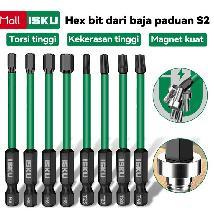 ISKU Magnetic Kunci L Hex Key Baja S2 Set H1.5 - H8 8 pcs/T6-T40 Star Bit set 9 pcs Mata Obeng Hex Bit