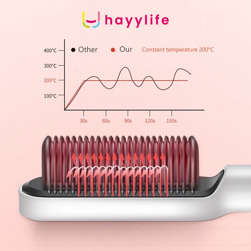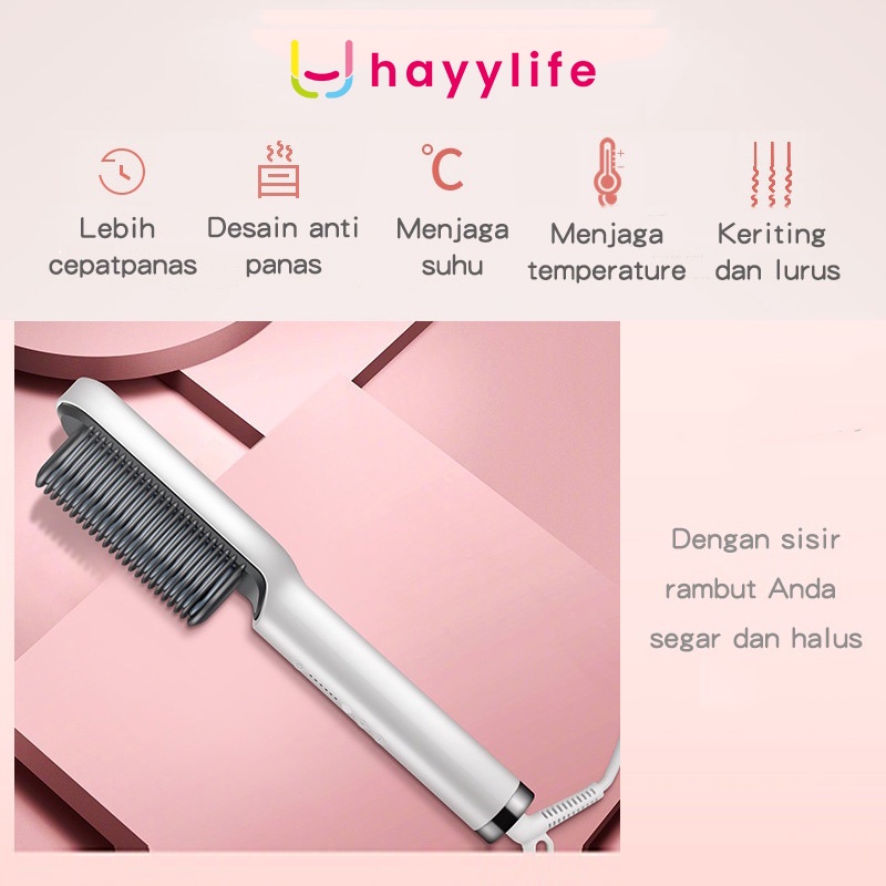 HAYYLIFE Catok Sisir Pelurus Rambut Hair Straightener Curler 2 in 1 catokan sisir listrik HL-BBB531