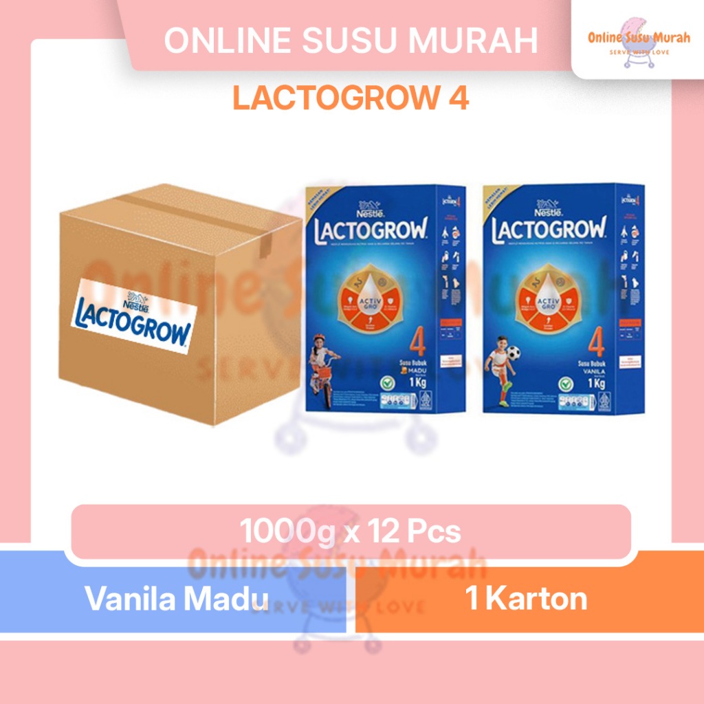 LACTOGROW 4 1000GR PAKET 1 KARTON 12 KOTAK VANILA MADU 1000 GR x 12 PCS IBU DAN BAYI/SALL BABY&KIDS/OFFICIAL/