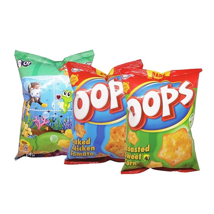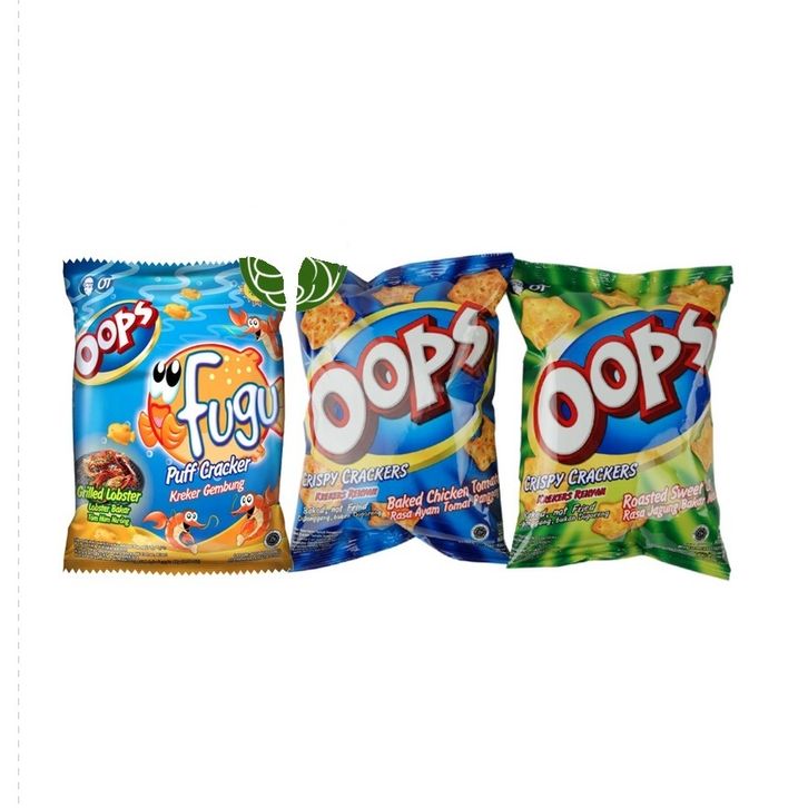 Camilan Biskuit Krekers Oops 40 Gr ( Grilled Lobster, Daebak Chicken, Fried Noodle ), 60 Gr ( Pops Cracker, Sour Cream )