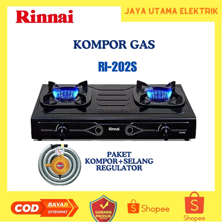 Rinnai Kompor Gas 2 Tungku RI-202 S / RI 202 S + Free Regulator dan Selang SNI/kompor/kompor 2 tung