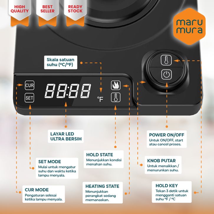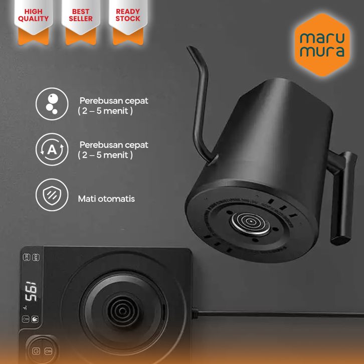 Marumura Smart Coffee Kettle 1000 ml | Smart Gooseneck Coffee Kettle | Teko Kopi Leher Angsa | Teko Kopi Elektrik