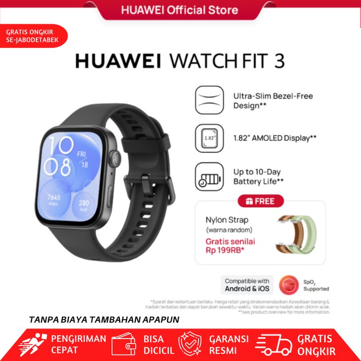 [PROMO SPESIAL] HUAWEI WATCH FIT 3 Smartwatch Original #anti air/terbaik/casio/Branded/g shock/skmei/pria/wanita